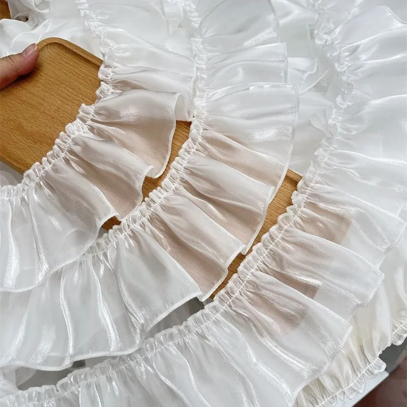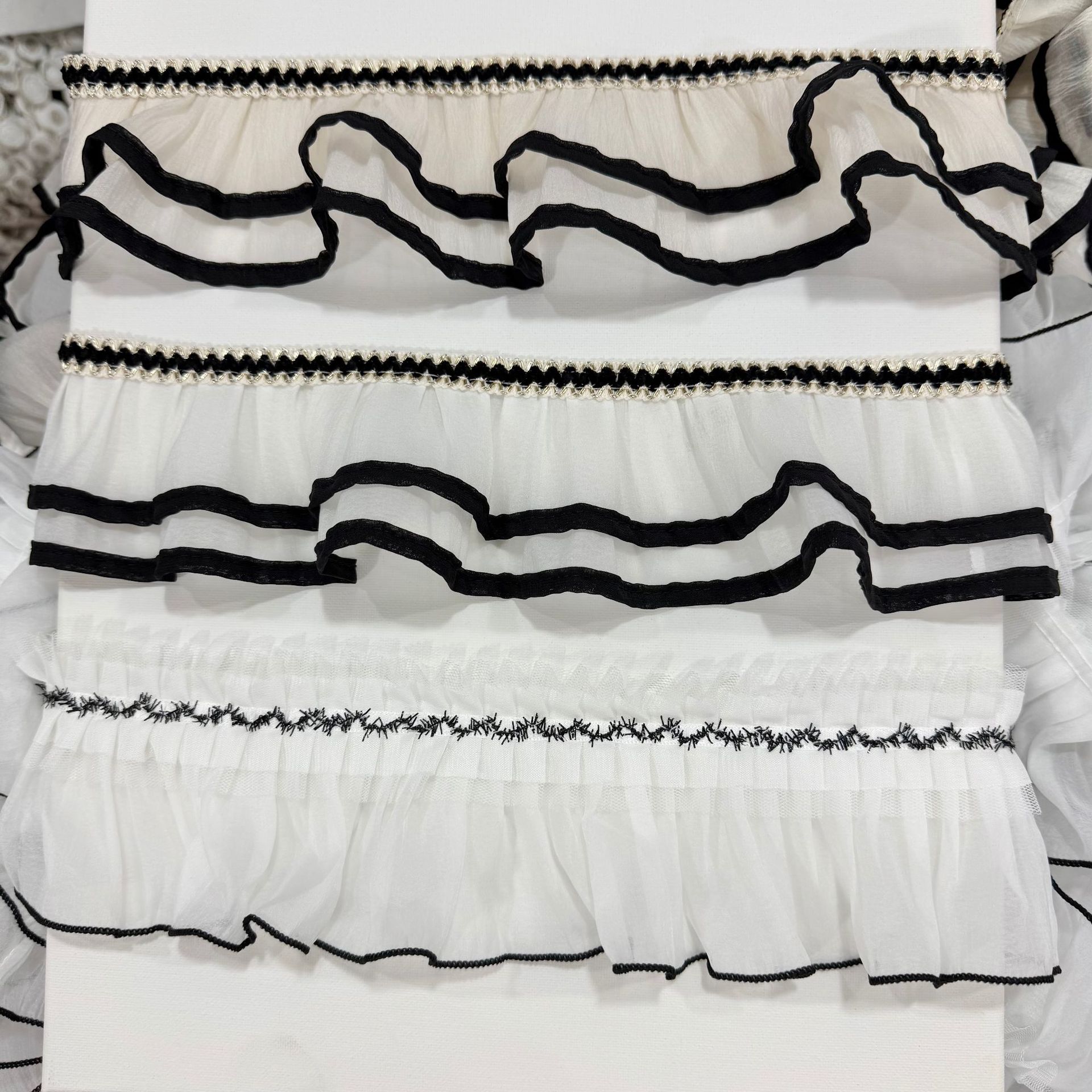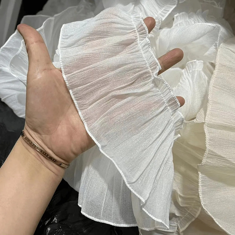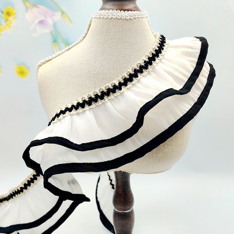 7cm真珠光沢糸、白黒木耳、真珠光沢糸、プリーツ裾、衣装レースアクセサリー、サイドカーテンステッチ