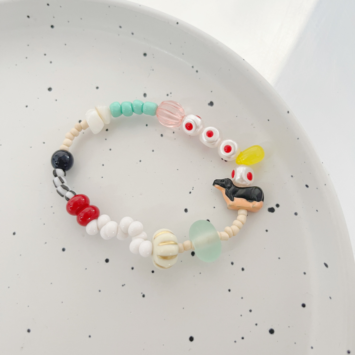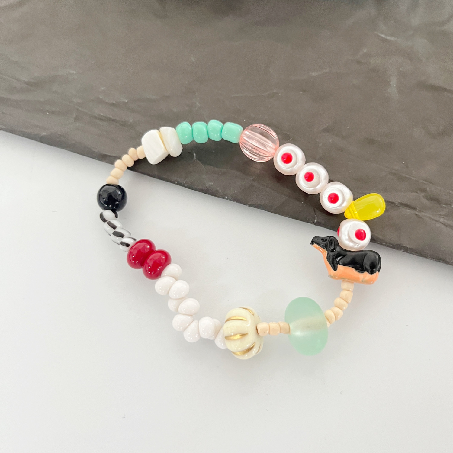 ドーパミンかわいい甘いカラフルなダックスフントブレスレット不規則なビーズブレスレット女性ニッチパーソナライズされたファッションジュエリー