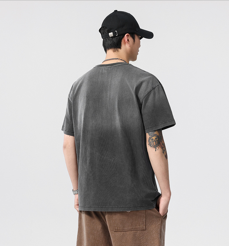 15165 # メンズ大きいサイズピュアコットンヘビーデューティーウォッシュ加工グラデーション両面発泡プリントルーズ半袖Tシャツ
