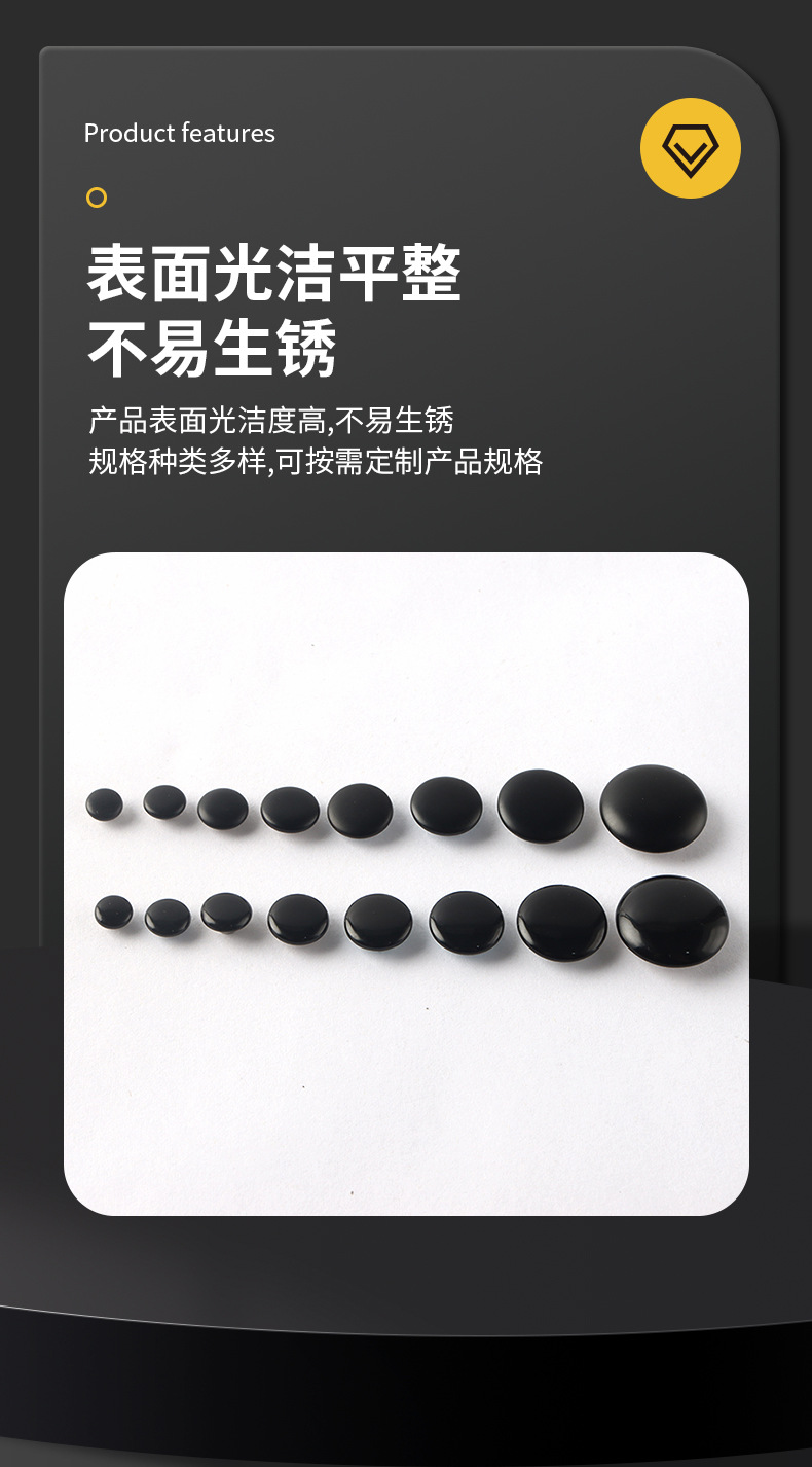 メーカー卸売 金属製黒色四つ折りボタン831 焼付塗装急須ボタン486 両面四つ折りボタン633 マット仕上げ