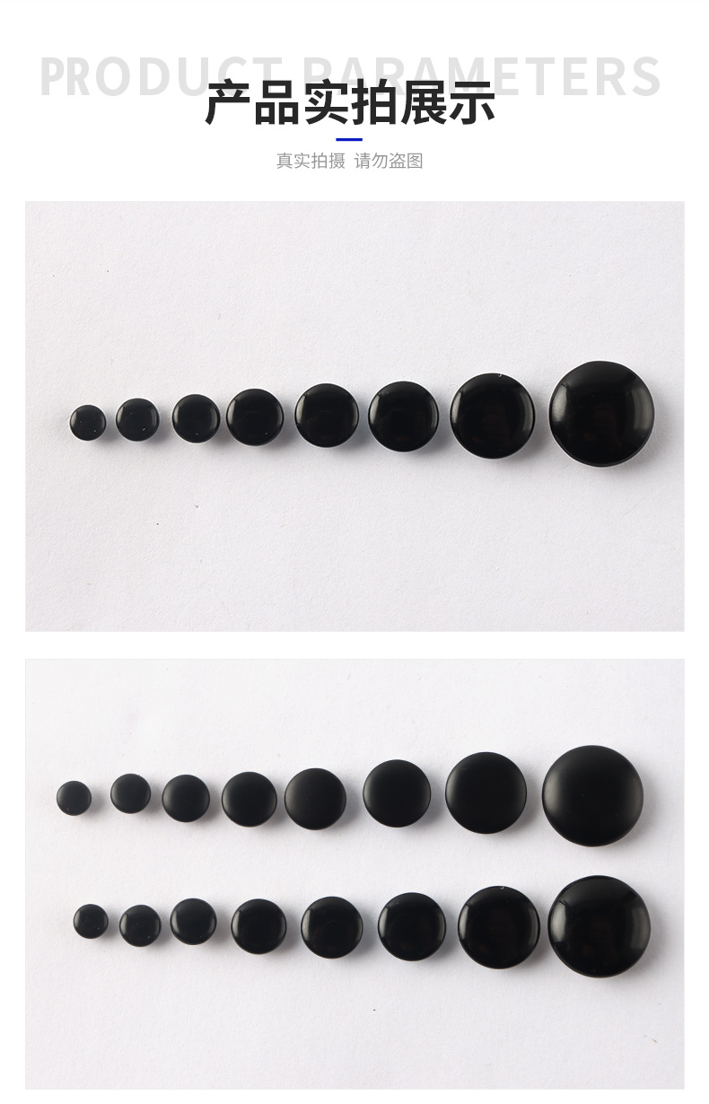 明るい黒のペンキ831ボタンのボタンは丸い金属の隠れた服のボタンを押します。