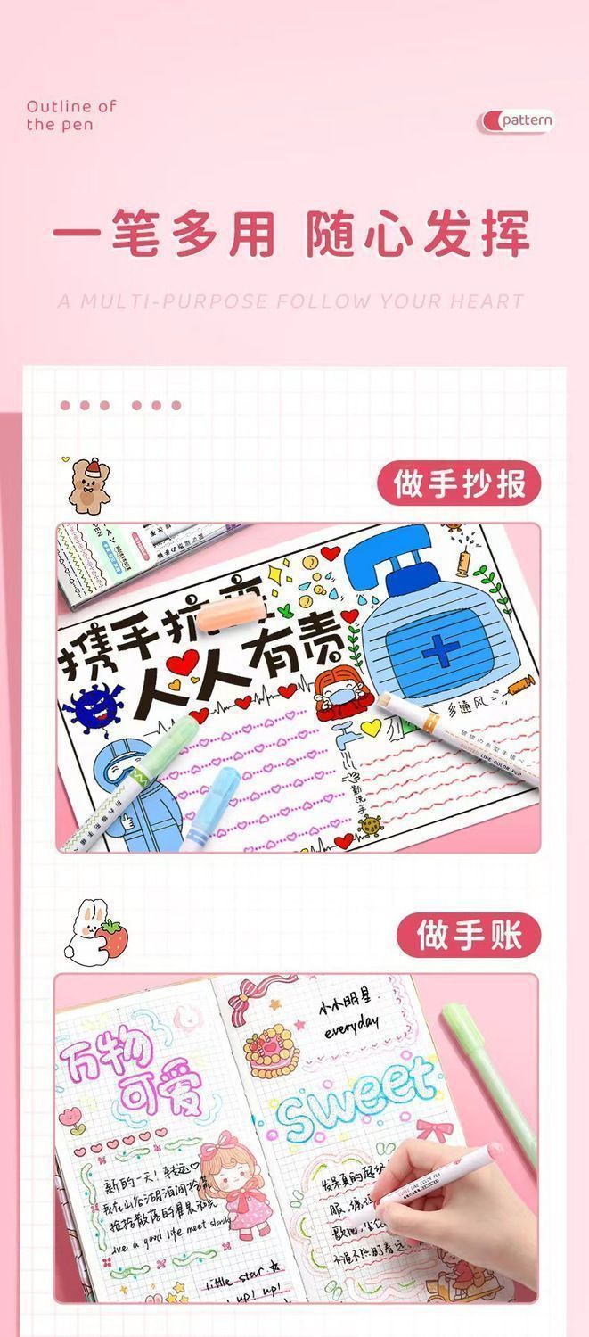 二重線アウトラインペン学生手書き新聞フラッシュ二色蛍光ペン子供の絵画落書きハンドブックマーカーマーカーペン