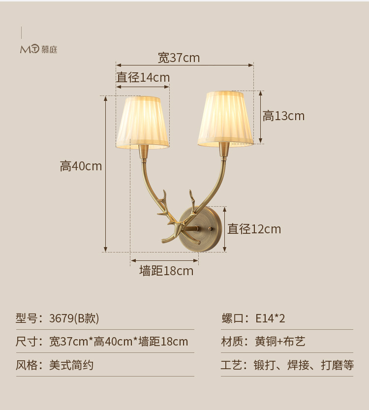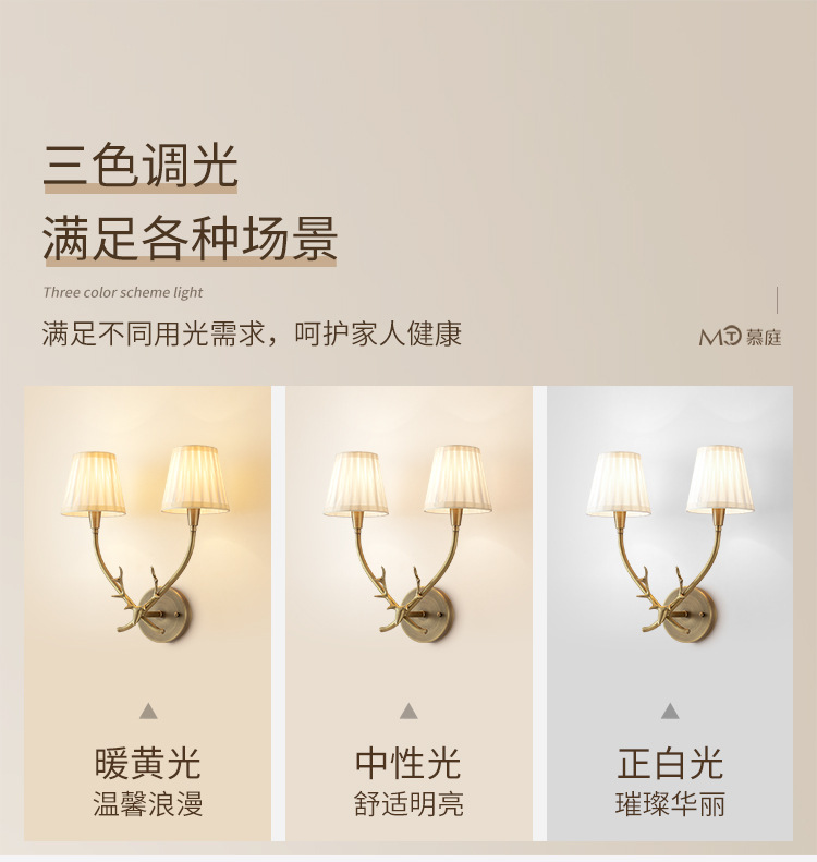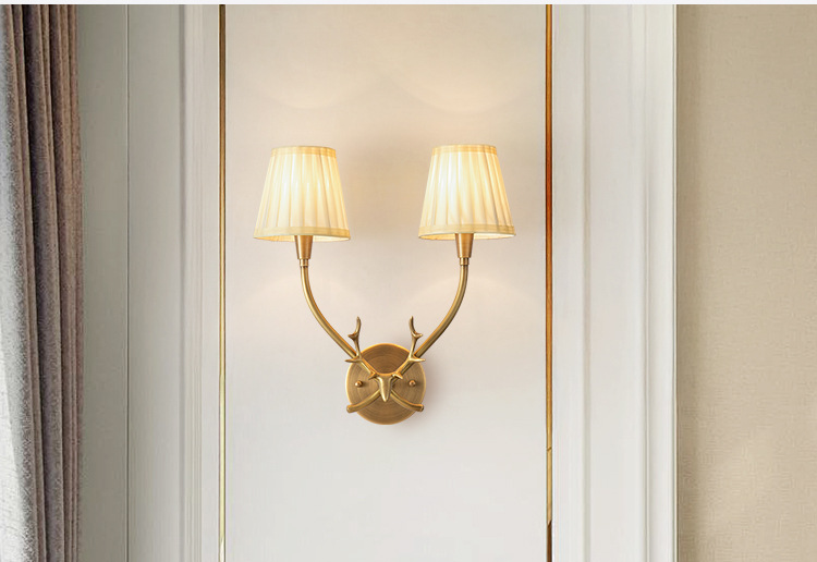 アメリカンリビングルーム背景壁ベッドサイド通路階段照明器具北欧シンプルな書斎シングルおよびダブルキャンドル全銅壁ランプ