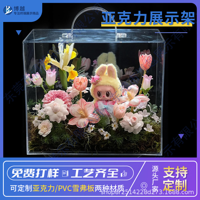 透明亚克力手提花盒永生花花束亚克力伴手礼品盒花束插花亚克力盒