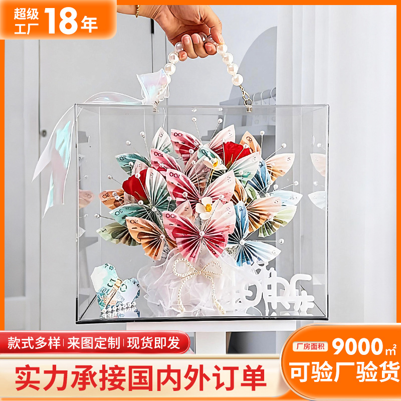 お金持ちの花の金のなる木順風満帆手作り diy インターネット有名人のカップルギフトボックスアクリルスーツケース空箱