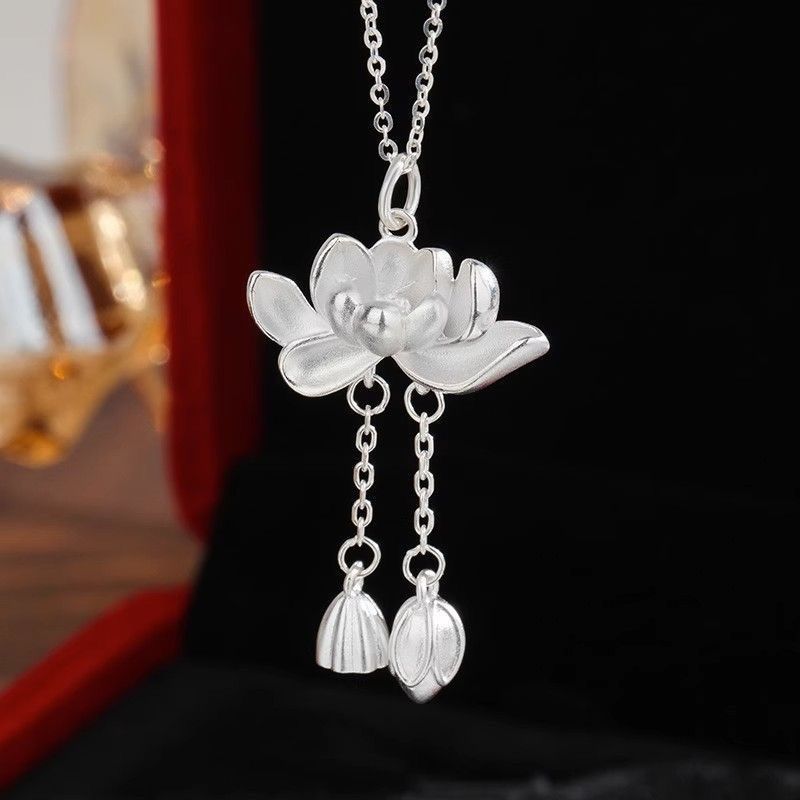 銅メッキ銀蓮の花蓮蓬流蘇ペンダントネックレス女古風二世歓幸連蓮の花が鎖骨チェーンにぶら下がっている