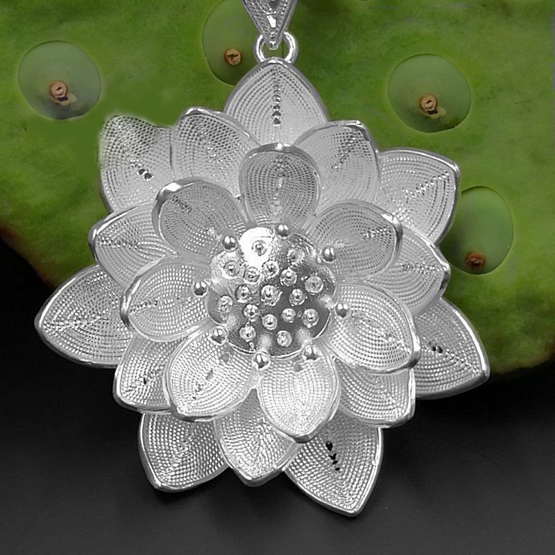 銀メッキの蓮の花のペンダントのネックレスの少数民族風が爆発しました。
