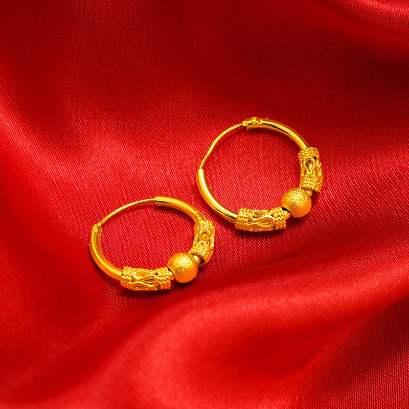 Xiaohongshu レトロ転送ビーズイヤリング女性のイヤリングゴールドメッキフープイヤリング女性の卸売つや消し耳フープジュエリー