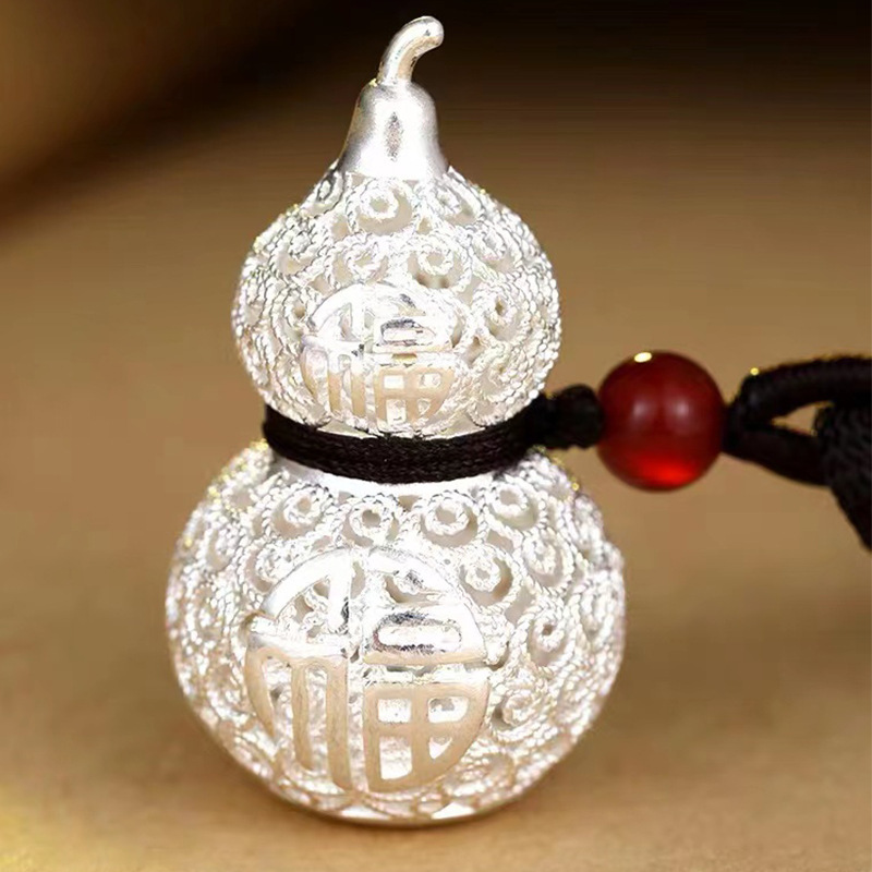 銀メッキのレトロな透かし彫りの福の字の福禄は国風のカップルの金をぶら下げて縄の瓢箪がぶら下がって生放送します。