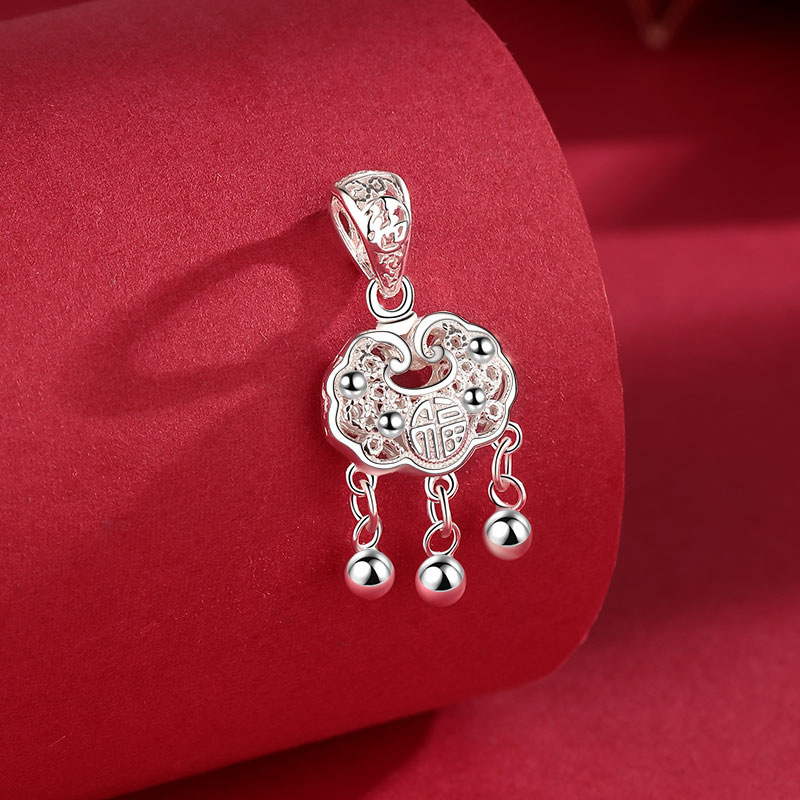 銀メッキ如意錠ペンダントネックレス少数民族風福字平安錠ペンダントネックレス生放送人気アクセサリー