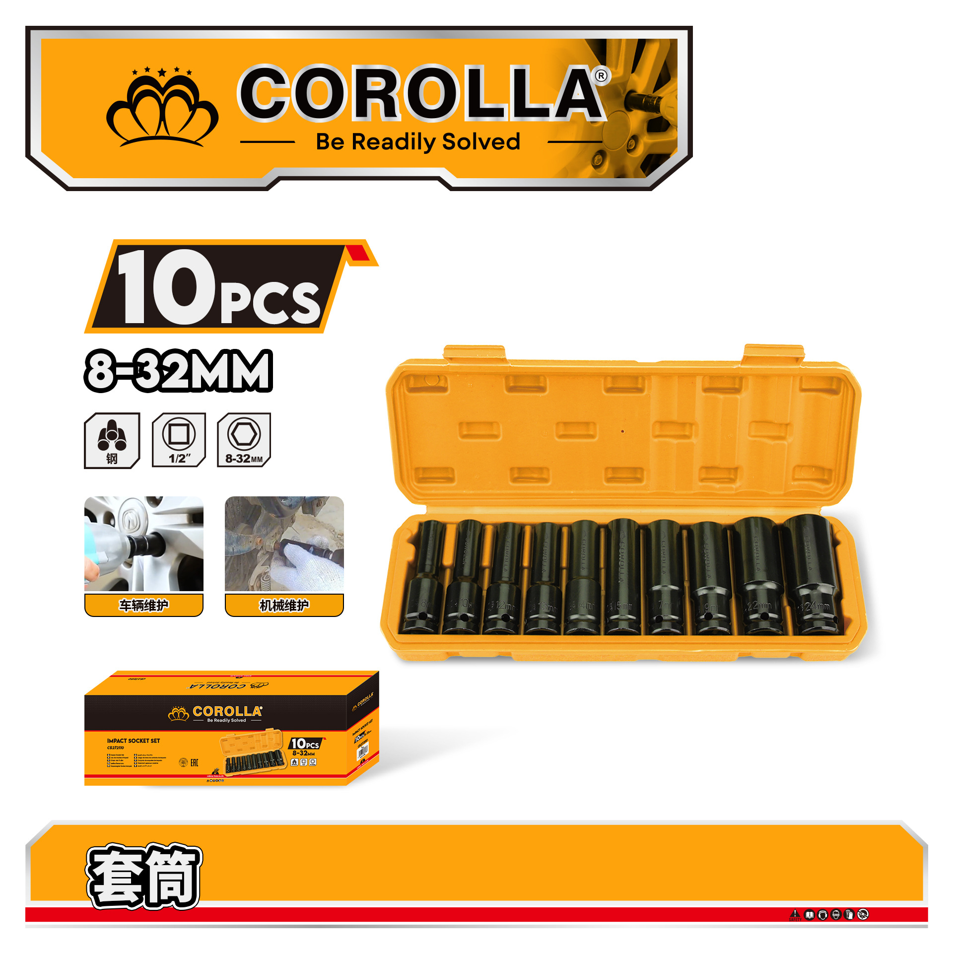 跨境批发电动扳手套筒套装棘轮扳手套装汽修12件套内六角加长套筒