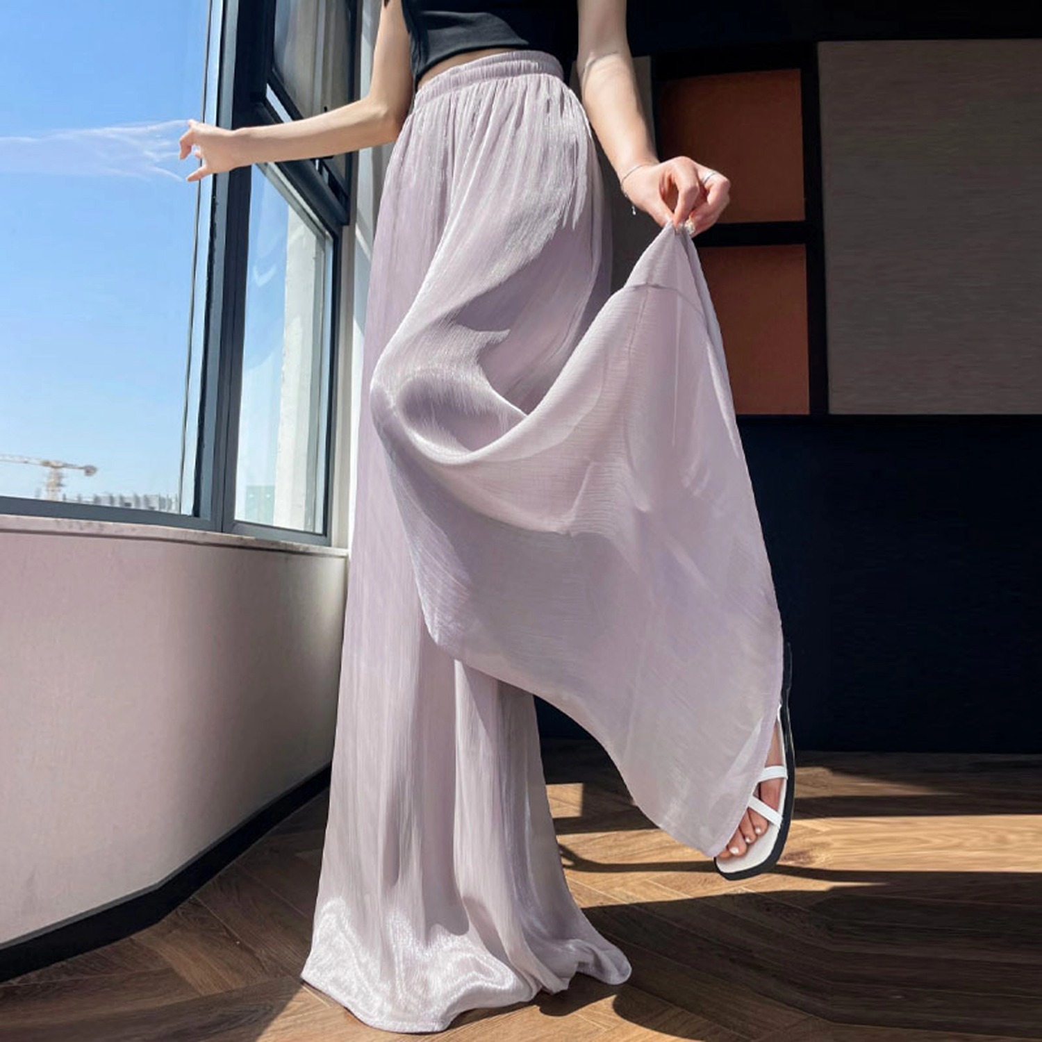 紫色天丝光泽琉璃纱冰丝裙裤女夏薄款防晒空调飘飘雪纺休闲阔腿裤