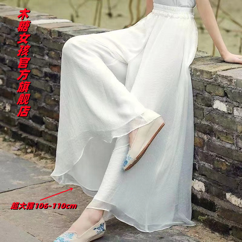 パンツスカート 新しいワイドレッグパンツスカート ホワイト 二層シフォン ハイウエスト 多用途 ゆったり 文学 カジュアル ワイドレッグパンツ ドレープスカート