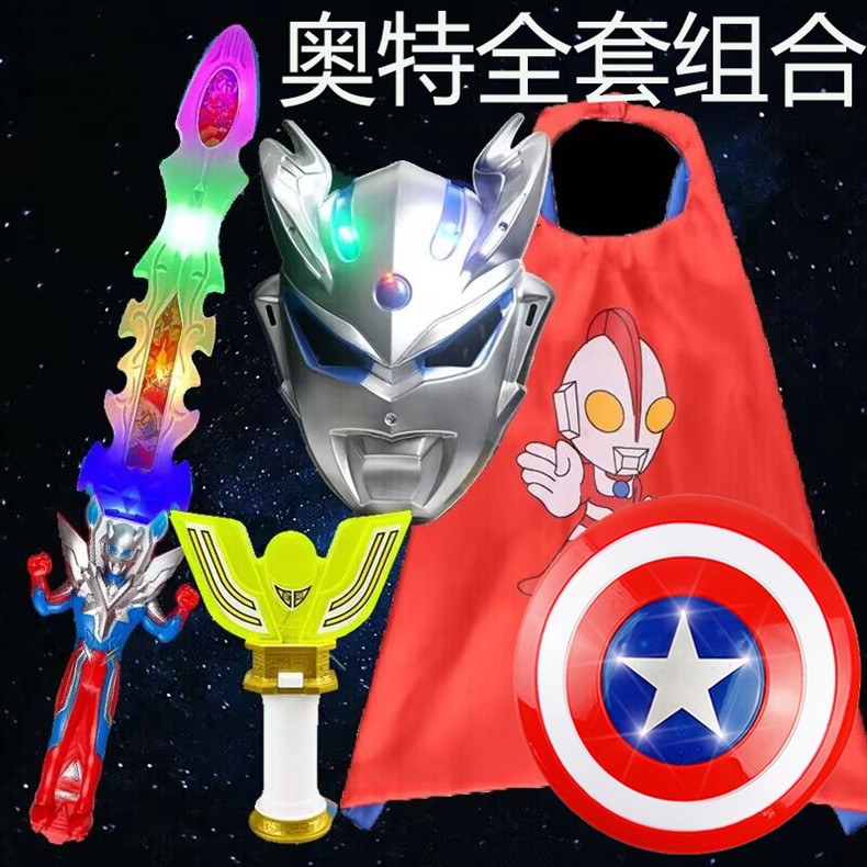 セロウルトラ漫画マスクマント子供玩具男の子宝剣発光玩具盾セット音楽刀剣