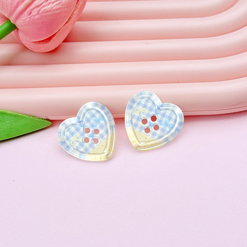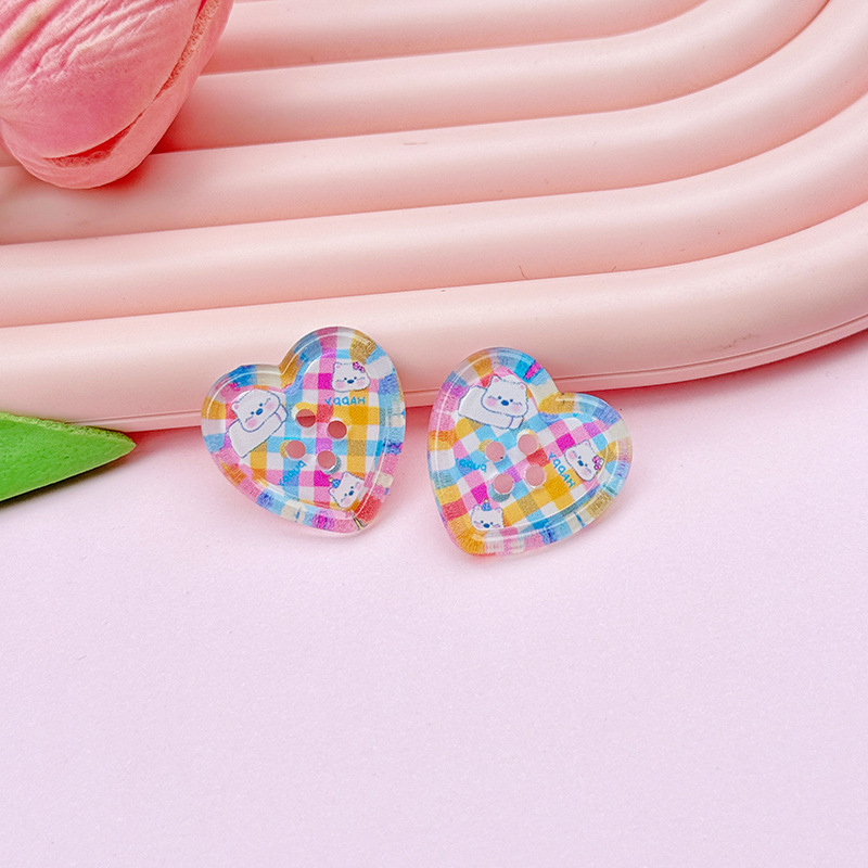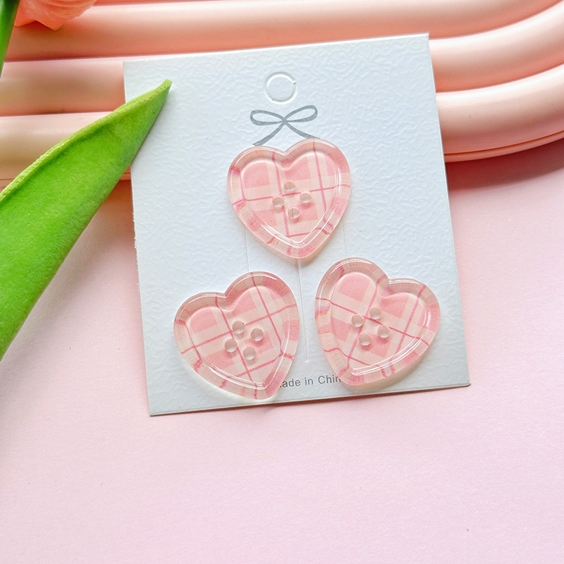 レトロな格子縞愛ボタンアクリルdiyアクセサリー携帯電話ケース靴ボタン靴花シール髪飾り材料