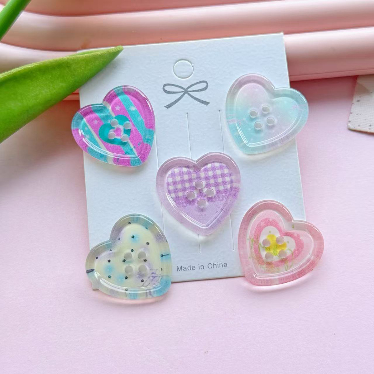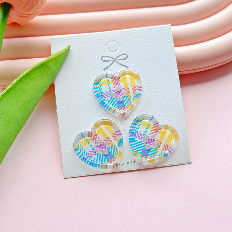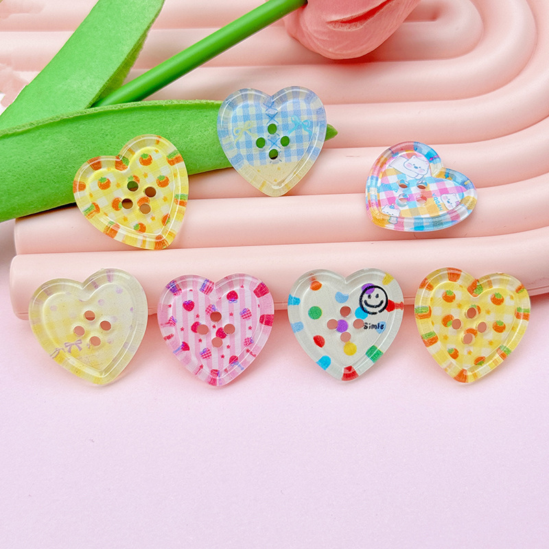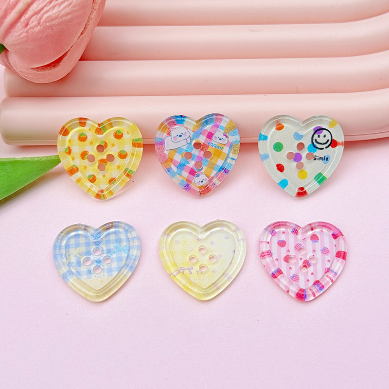 新型清新四穴愛ボタンdiy部品子供服コートボタンアクセサリー桃心多色卸売り