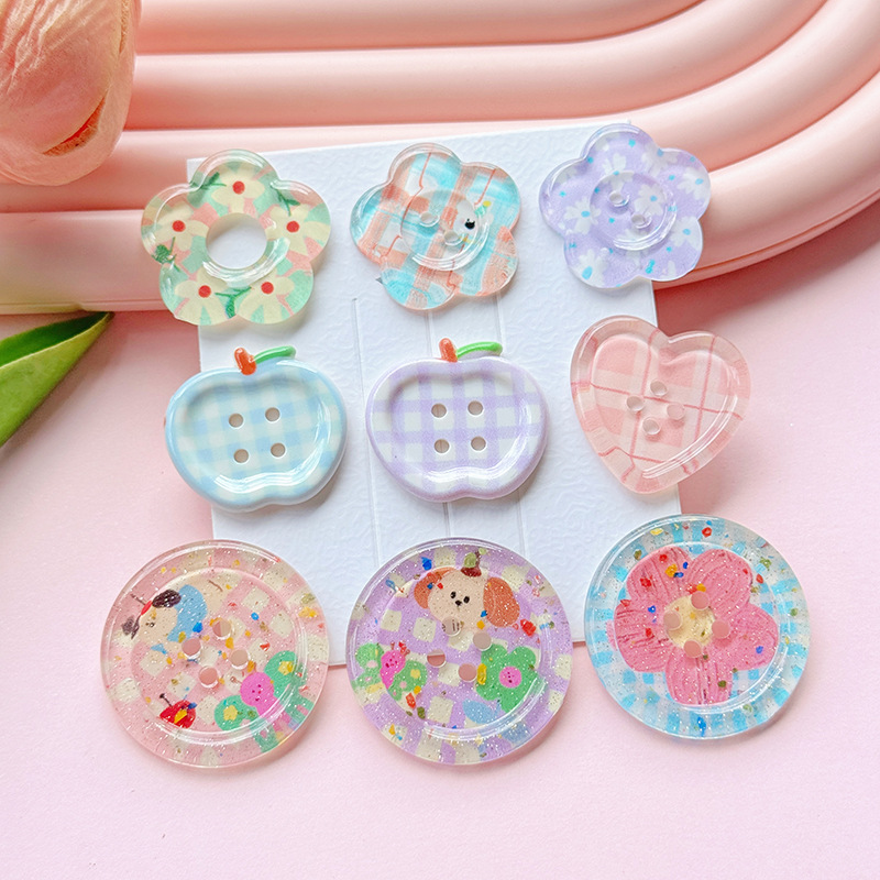 小清新愛ボタンアクリルdiyアクセサリー携帯電話ケース靴ボタン靴花シール髪飾り材料