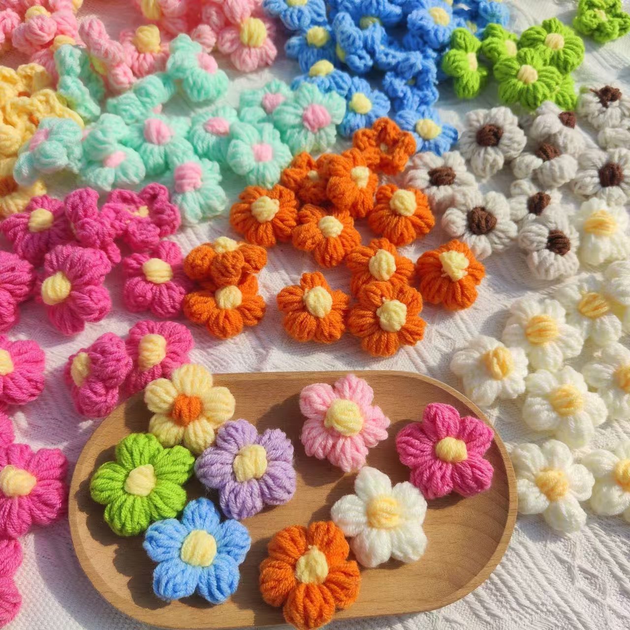 クロスボーダー手作り花 DIY パフフラワー手作りウールかぎ針編みかわいいウールフラワー服バッグセーターアクセサリー
