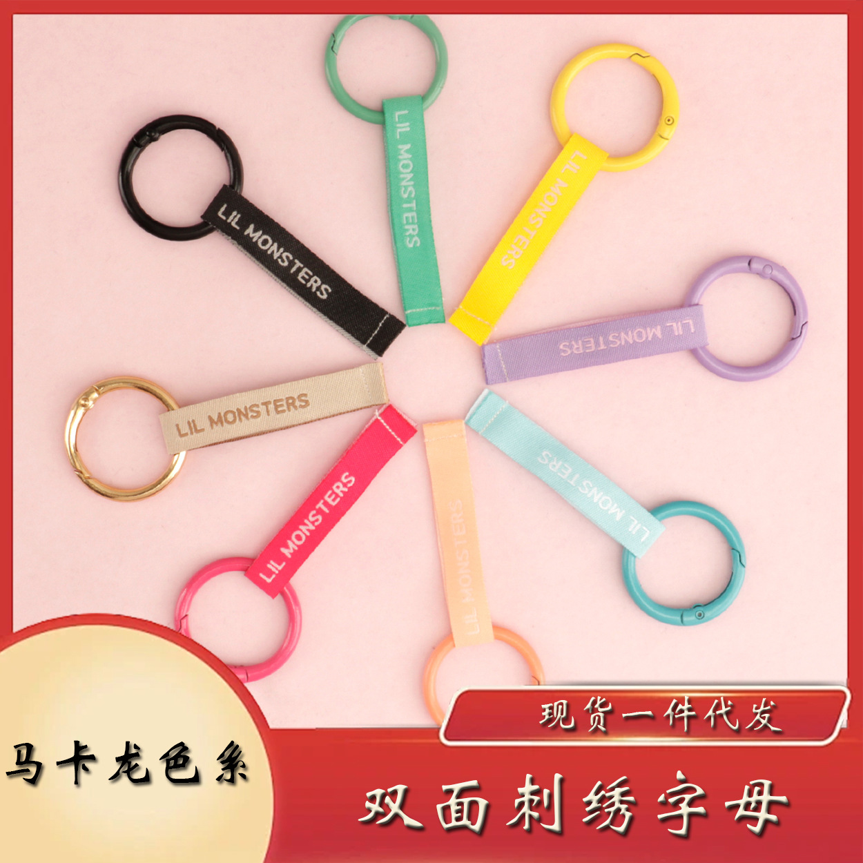 马卡龙色系拉布布公仔玩偶娃娃双面刺绣字母提绳提花钥匙扣挂件