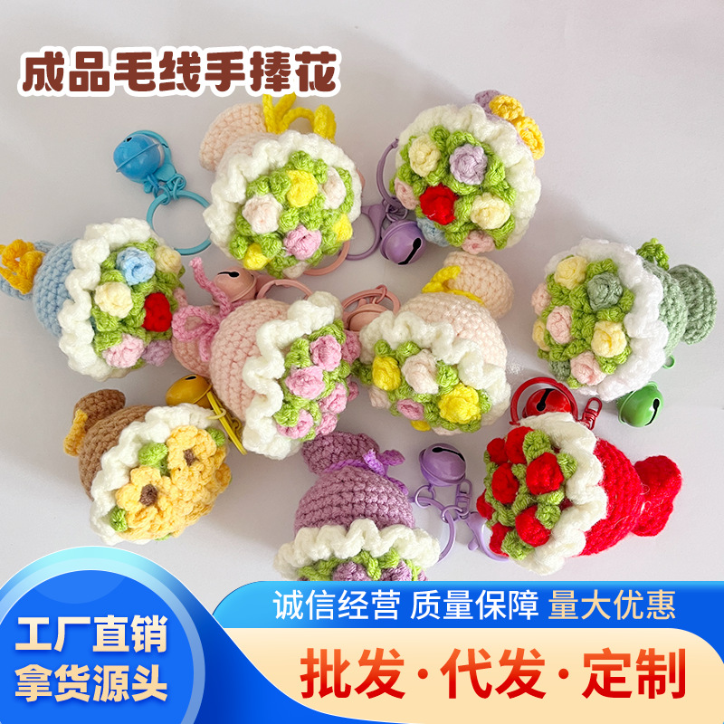新款迷你成品手捧花钥匙扣创意毛线编织玫瑰花束挂件小礼品包挂饰