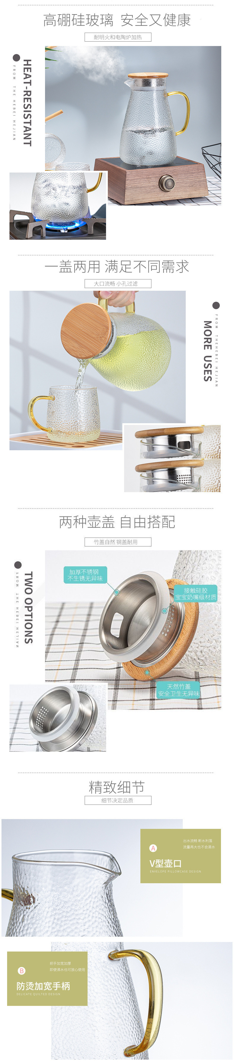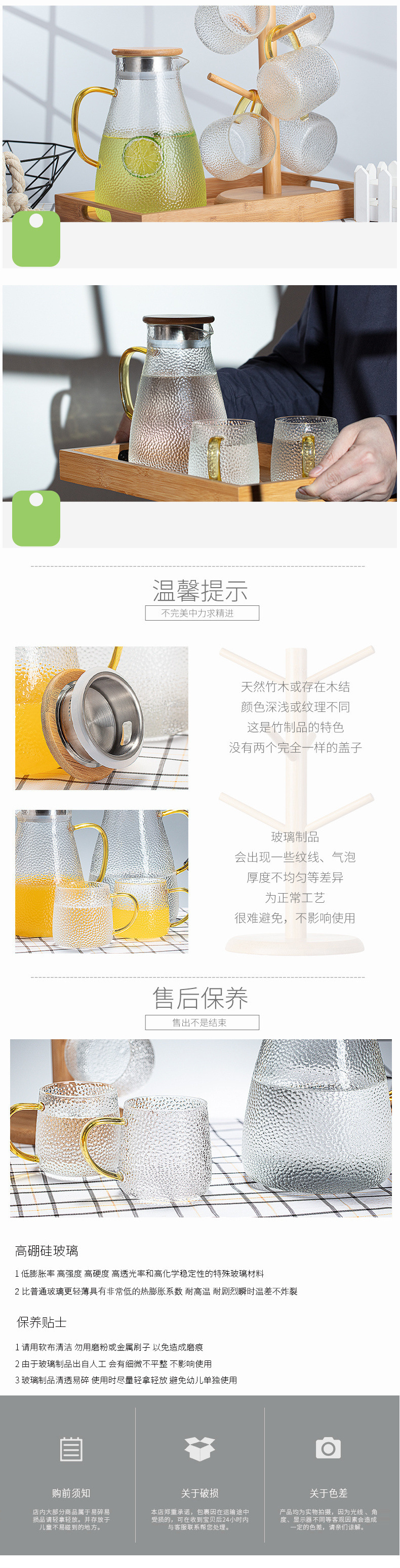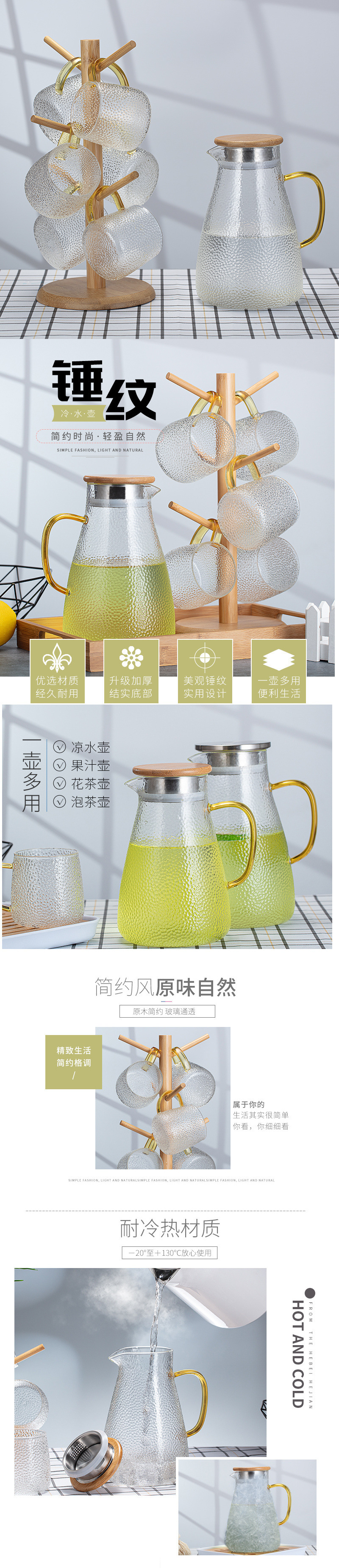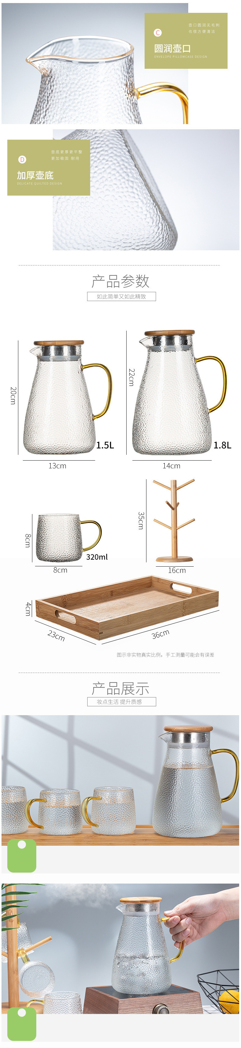 厚みのある耐熱ガラス槌目コールドケトル耐熱防爆大容量多目的ケトルジュースケトルカップセット