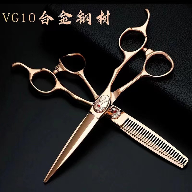 ヘアスタイリストの高級理髪はさみ、プロの理髪はさみ、18Kローズゴールドクローハート日本製フラットカットフィッシュボーン歯はさみ