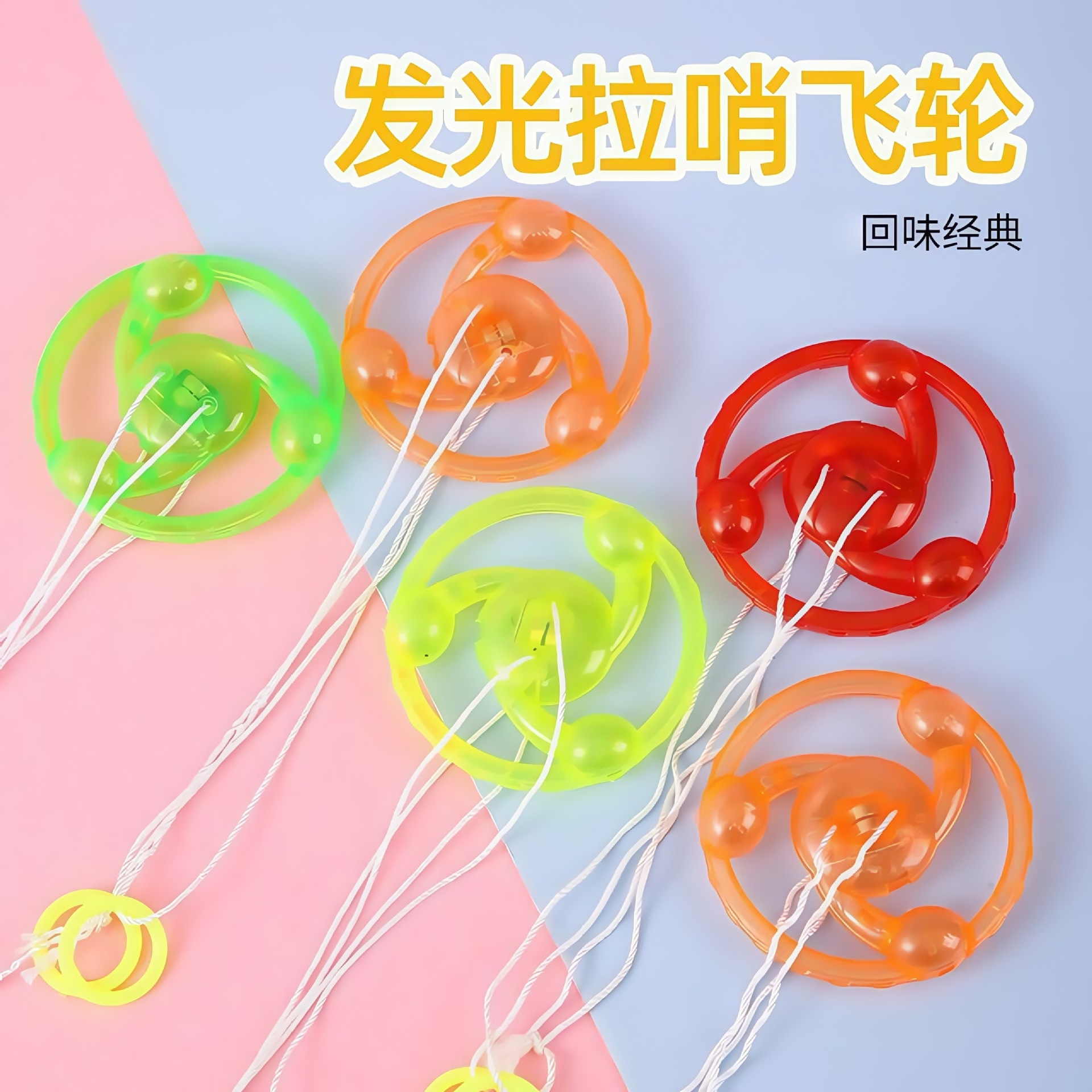 拉线发光飞轮手拉夜光闪光飞碟玩具陀螺拉线飞轮怀旧小玩具礼品