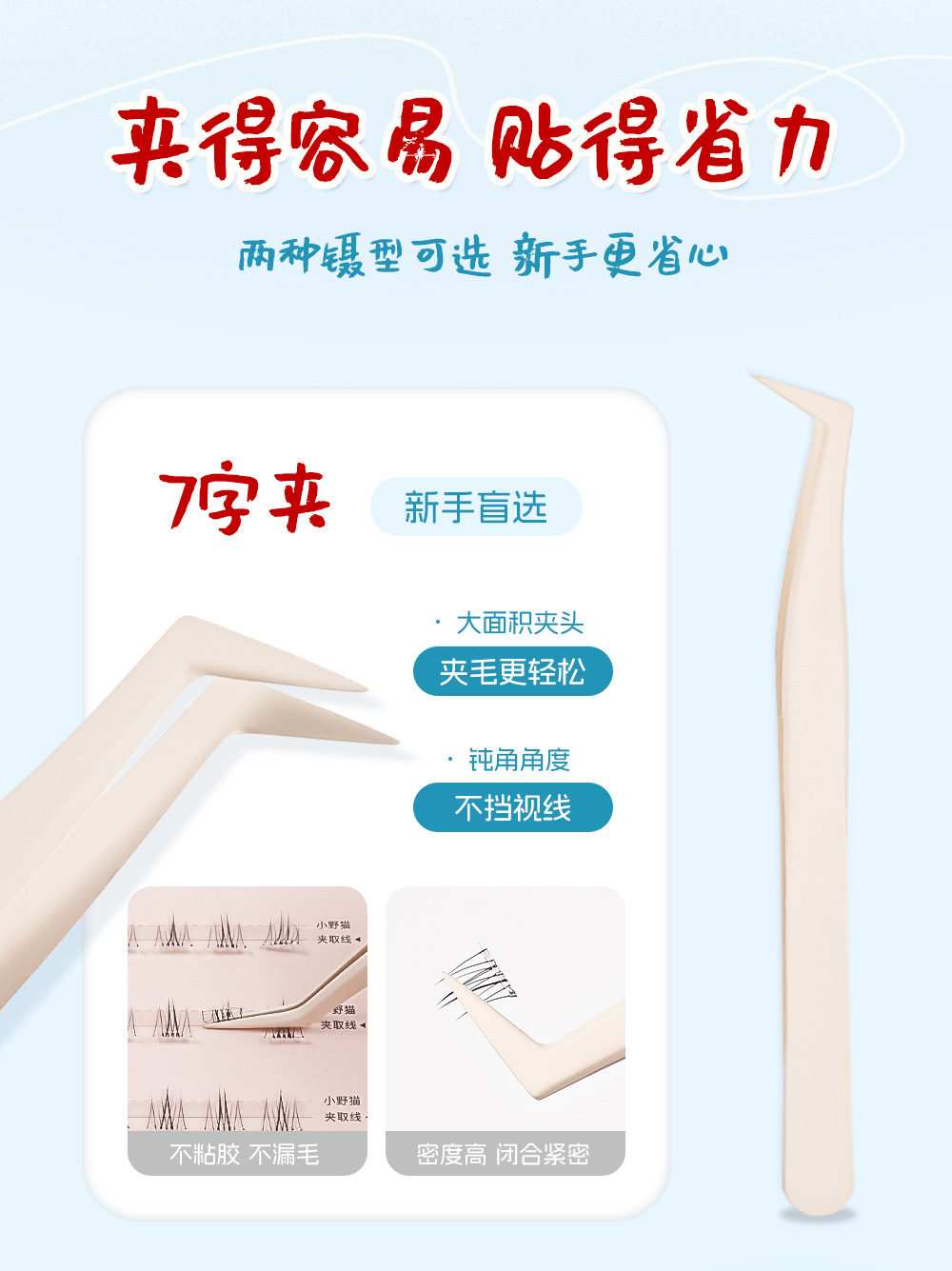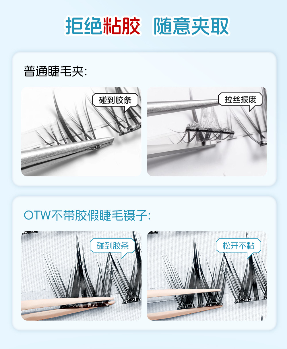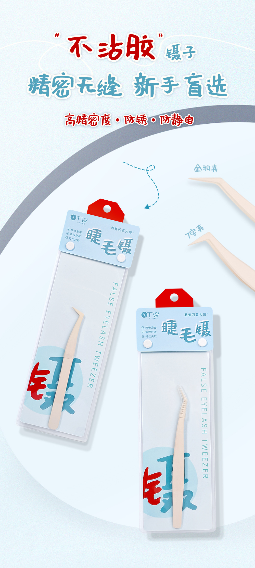 otw 粘着防止ピンセット、初心者向けの接着剤不使用のつけまつげ、まつげを傷つけない、7 文字のゴールデンフェザークリップ、非粘着ピンセット卸売