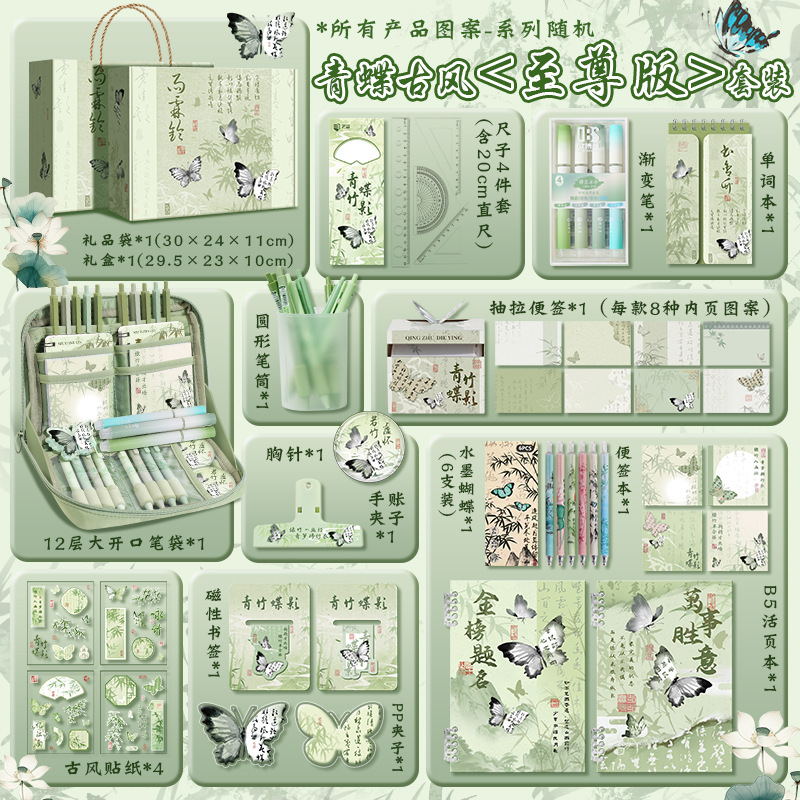 新学期文具セット Qingdie 中国風お土産小学生古代文具ギフトパック誕生日ギフトギフトパック
