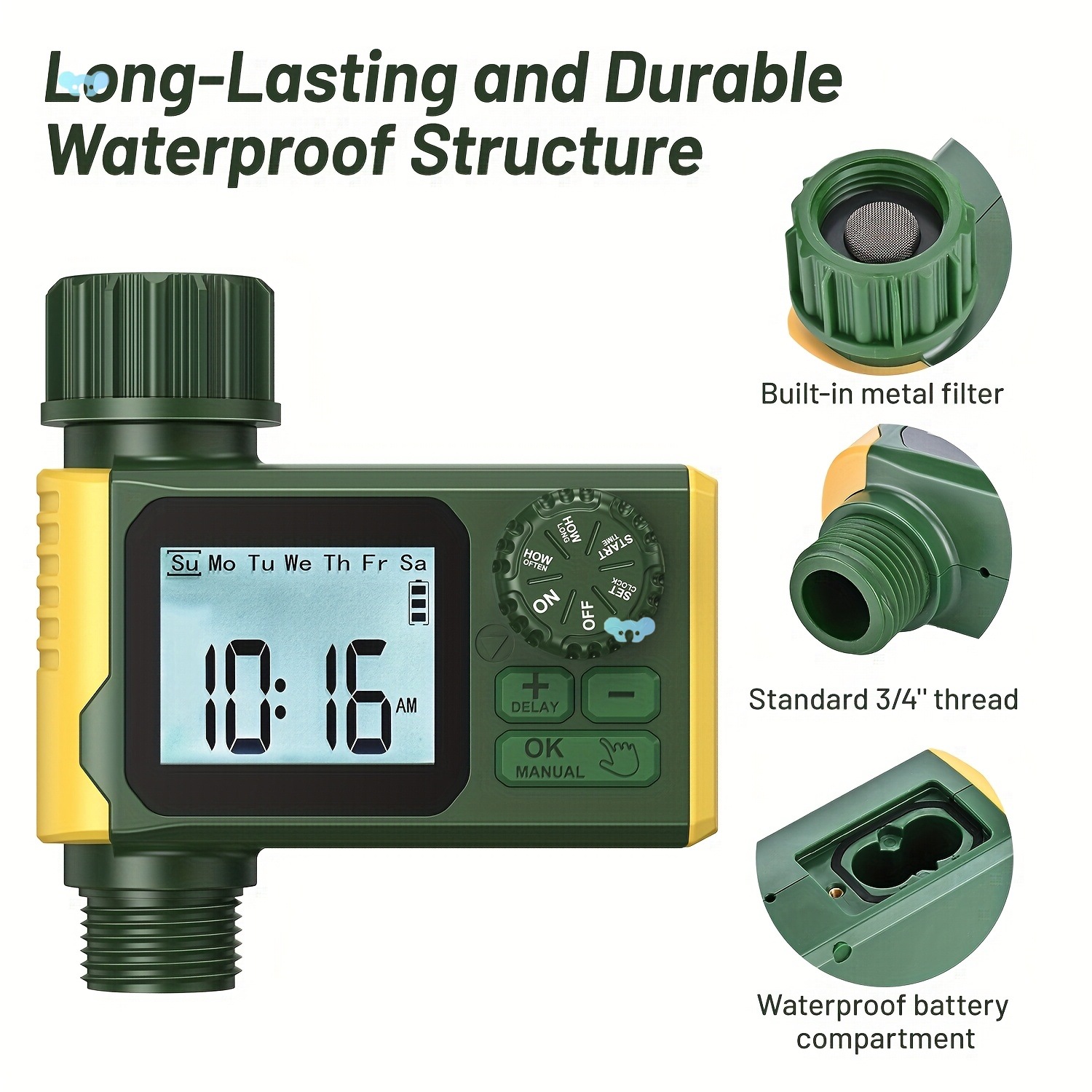 デジタルディスプレイ付き自動灌漑タイマー Metalcross