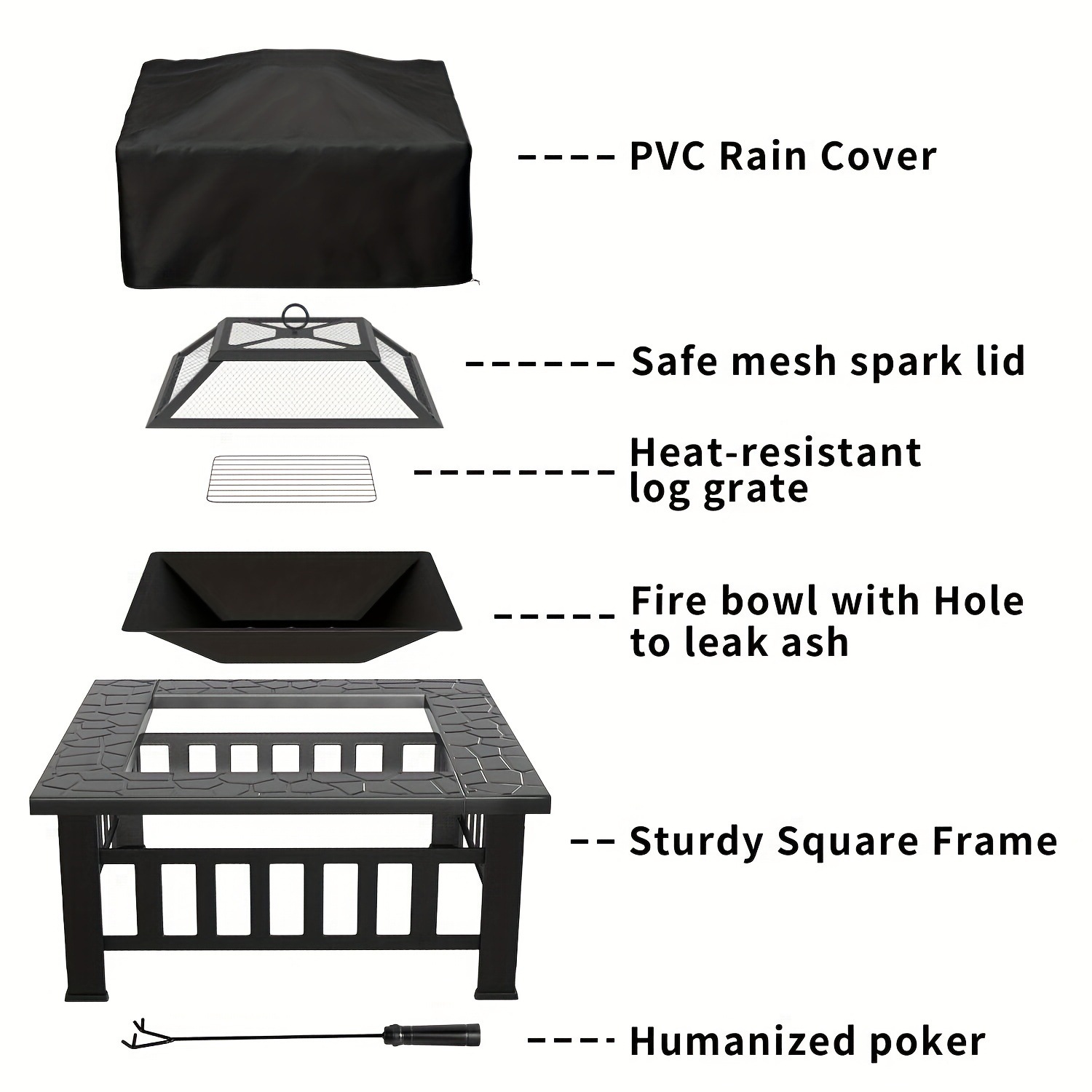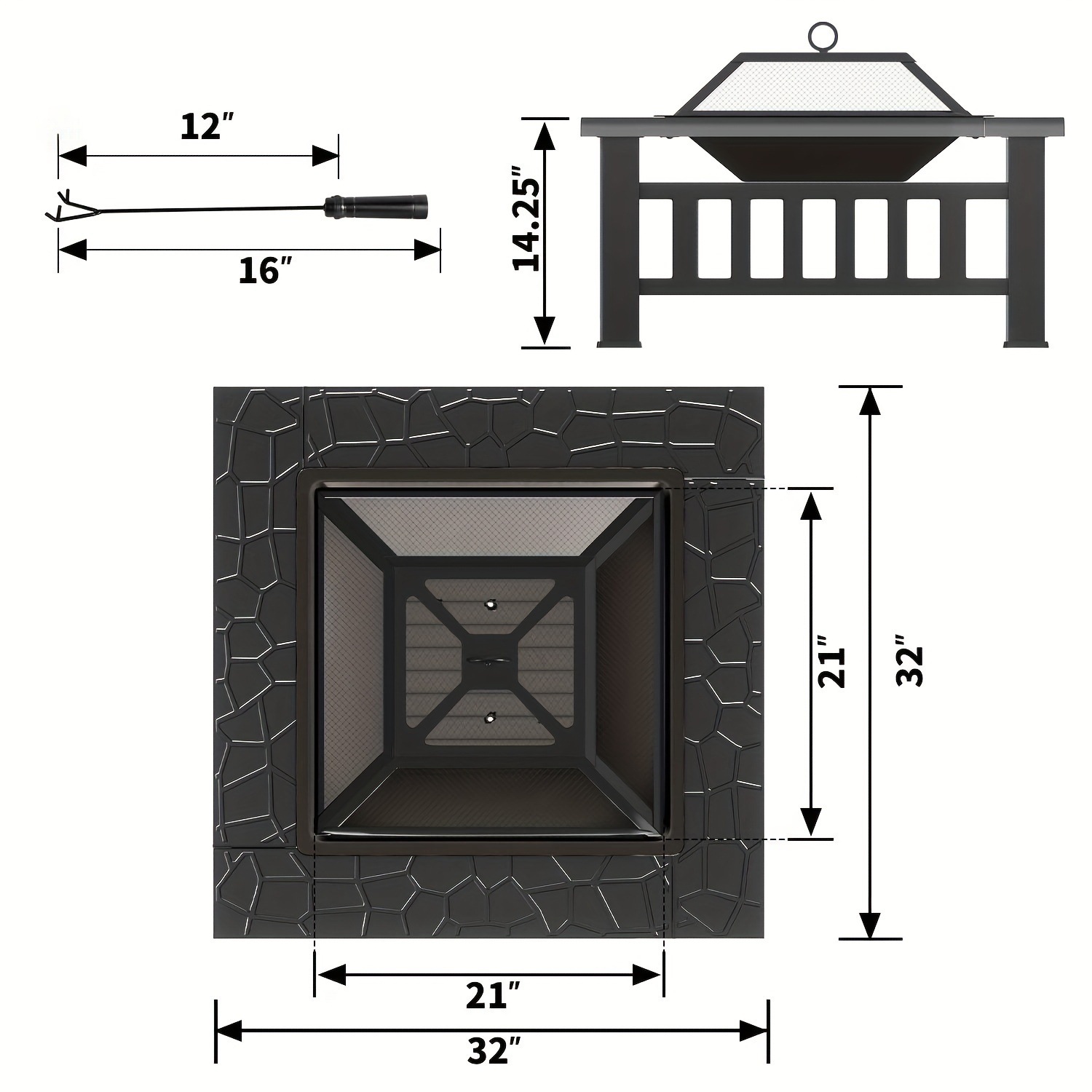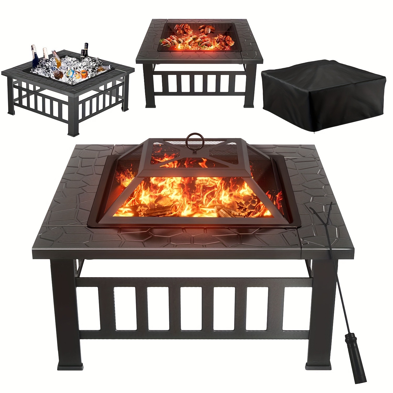 32 スクエア ファイア ピット テーブル 氷保管メッシュ蓋付き ヘビー