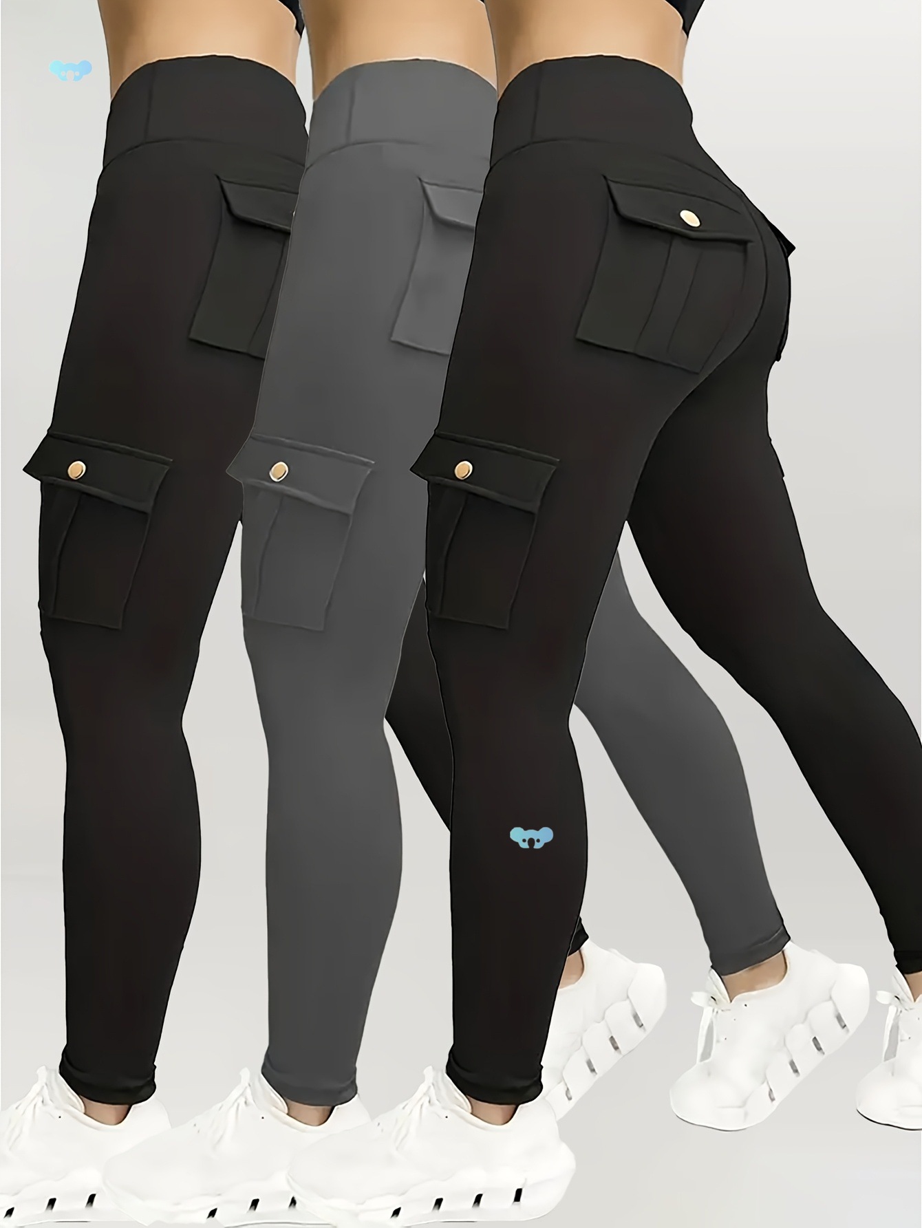 3 個の女性用ハイウエスト ヨガ タイツ ポケット付き 伸縮性あり