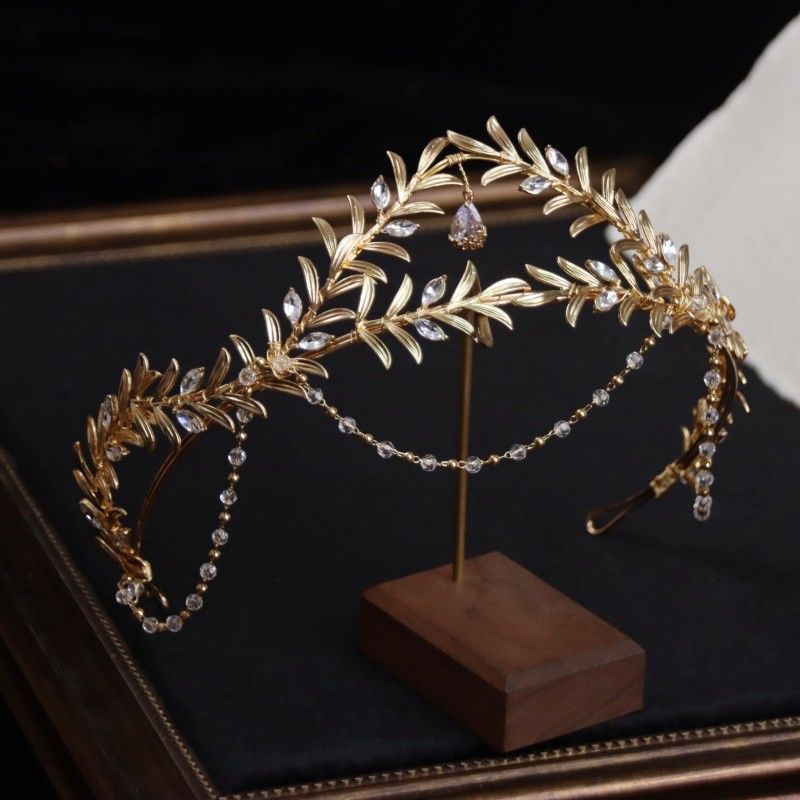 热卖爆款复古古典希腊额饰风流流苏金叶发箍派对礼服写真生日头饰
