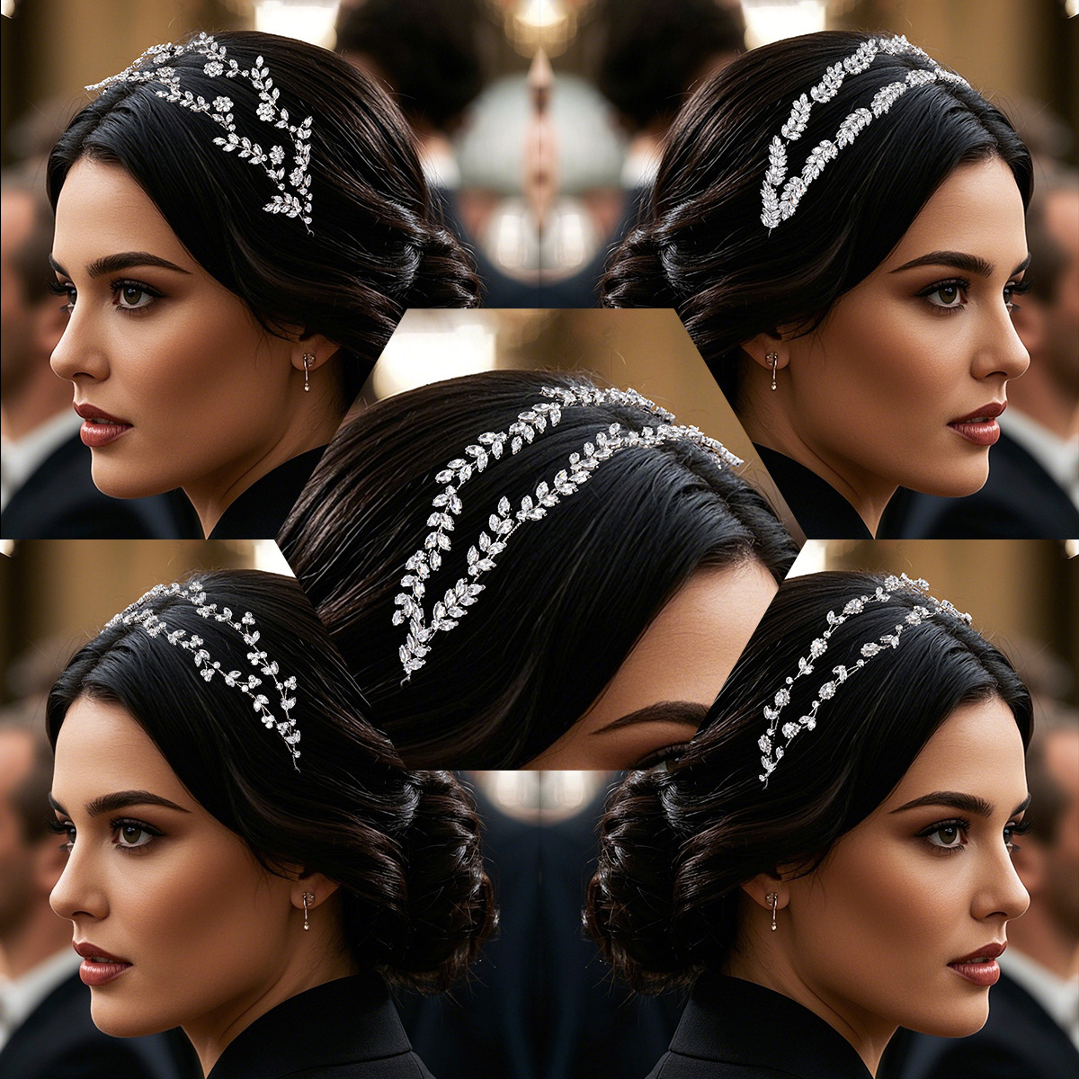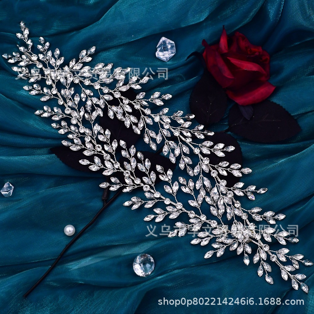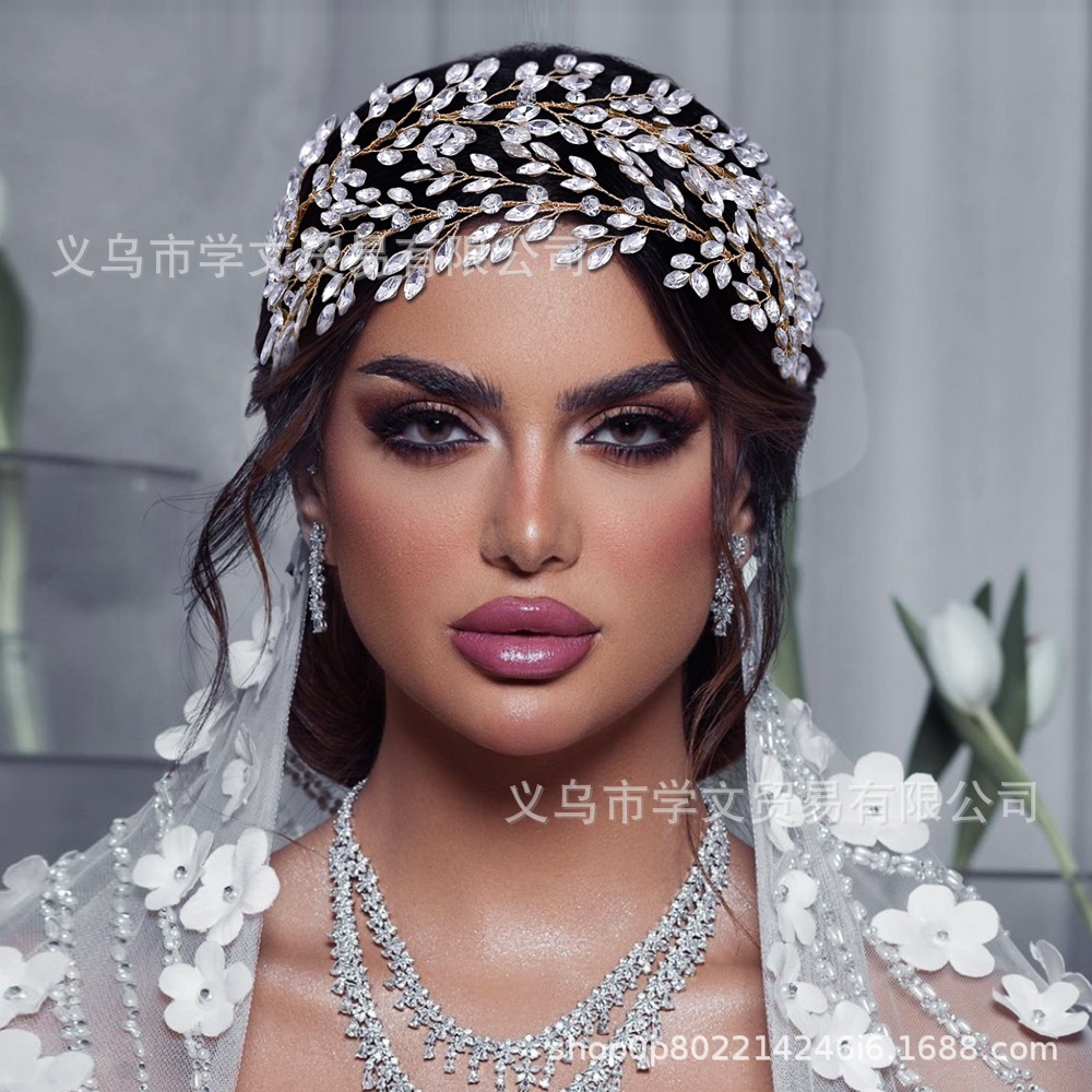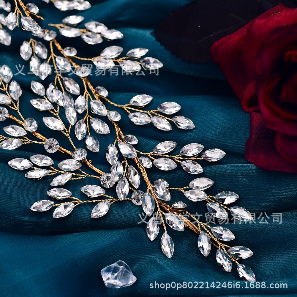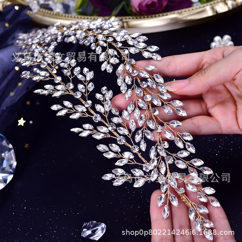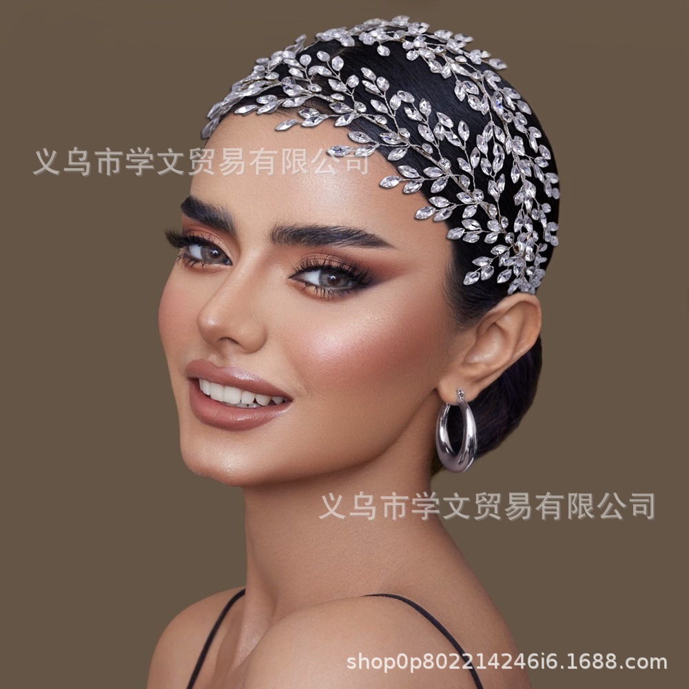 外贸新款新娘发带轻奢高级感宴会礼服发饰超闪锆石软链发箍发带女