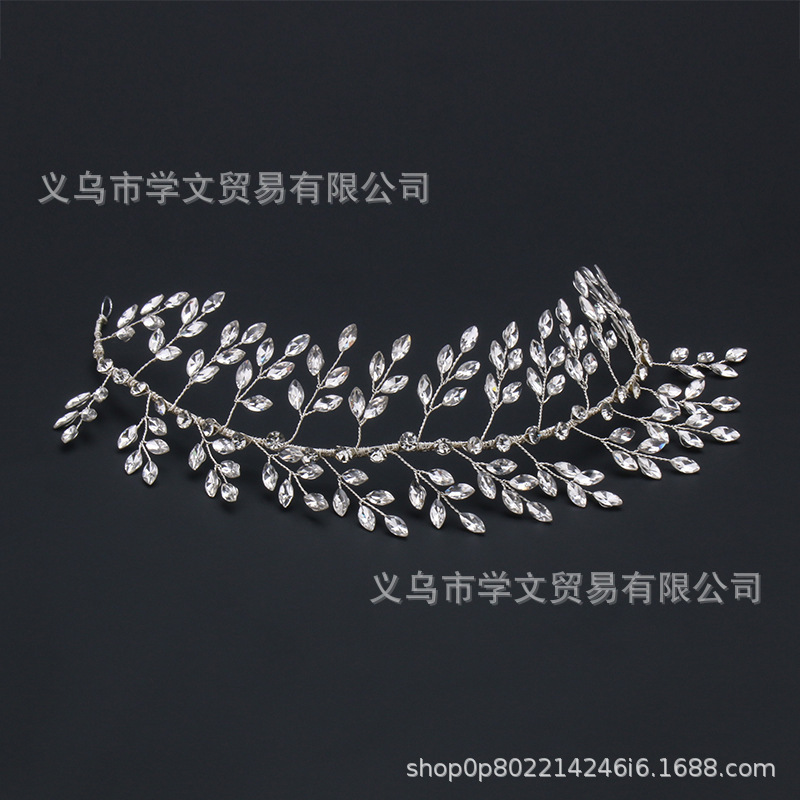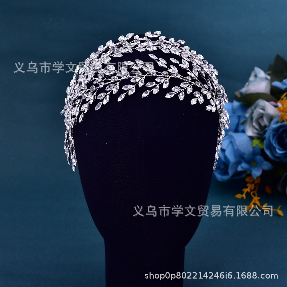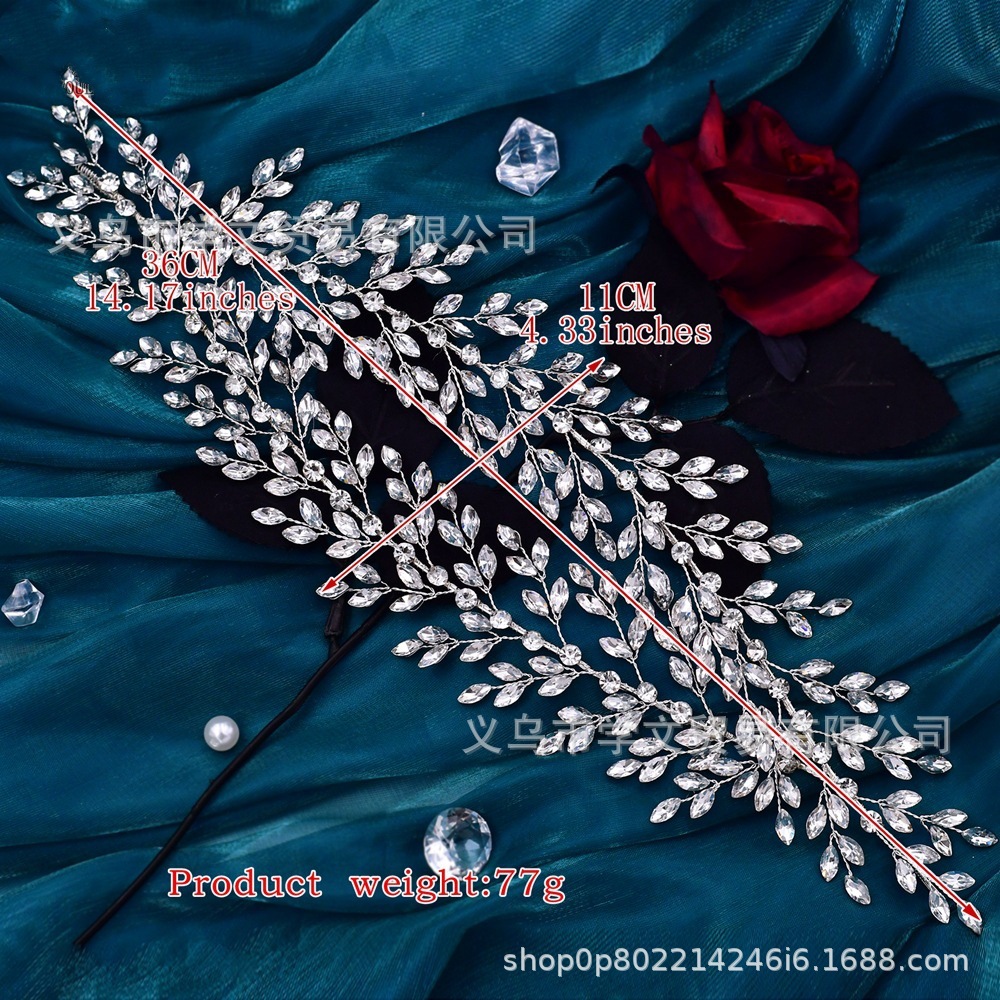 クロスボーダーファクトリー 欧米風レトロシルバーリーフパールクリスタルブライダルヘアバンド 高級感 クイーンソフトヘアチェーンヘッドドレス
