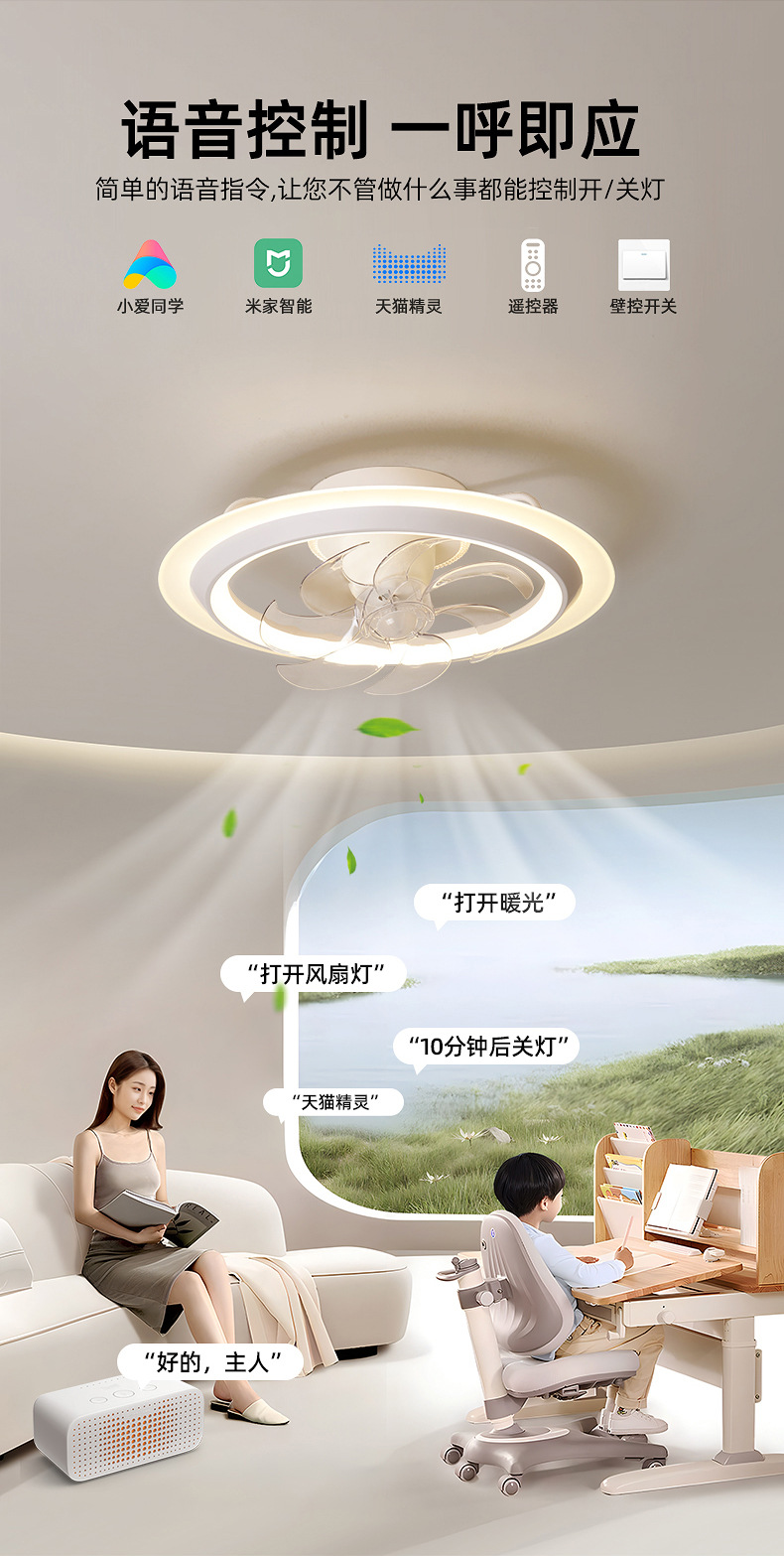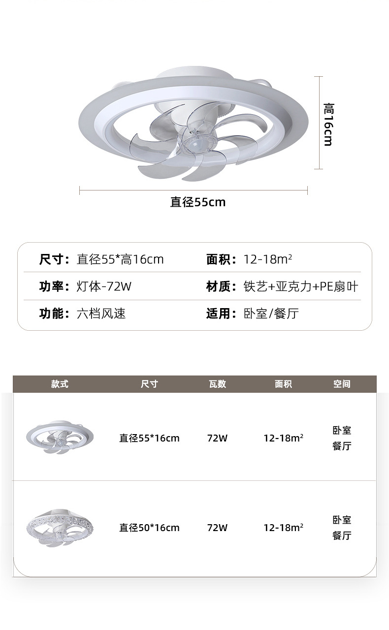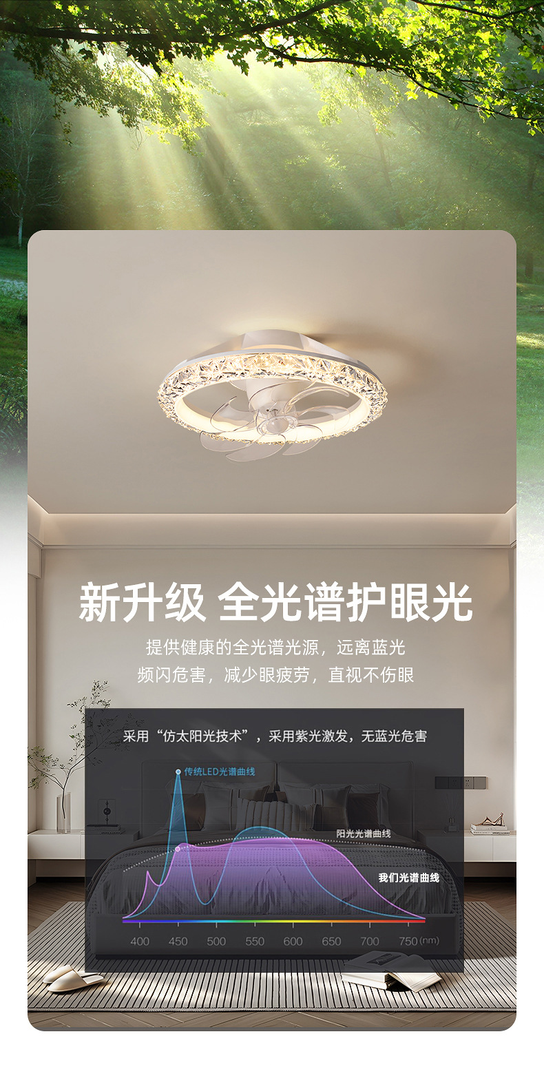 フルスペクトルモダンシンプル天井ファンライト寝室ダイニングルーム書斎ライト家庭用一体型扇風機調光機能付き