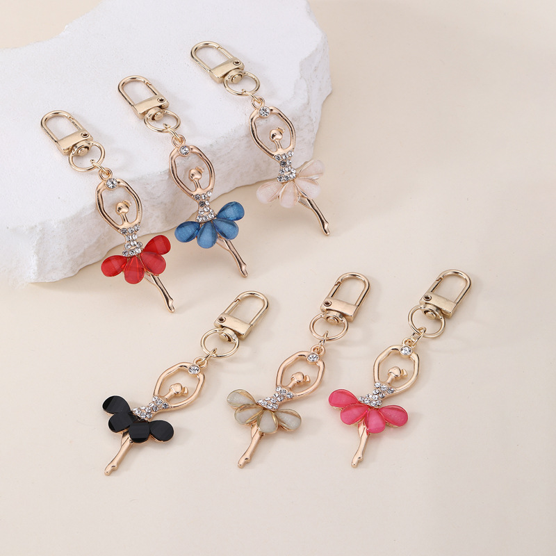 韓国スタイルのエレガントなバレエダンスガールキーホルダークリエイティブメタルキーチェーンアクセサリー車のバッグペンダント