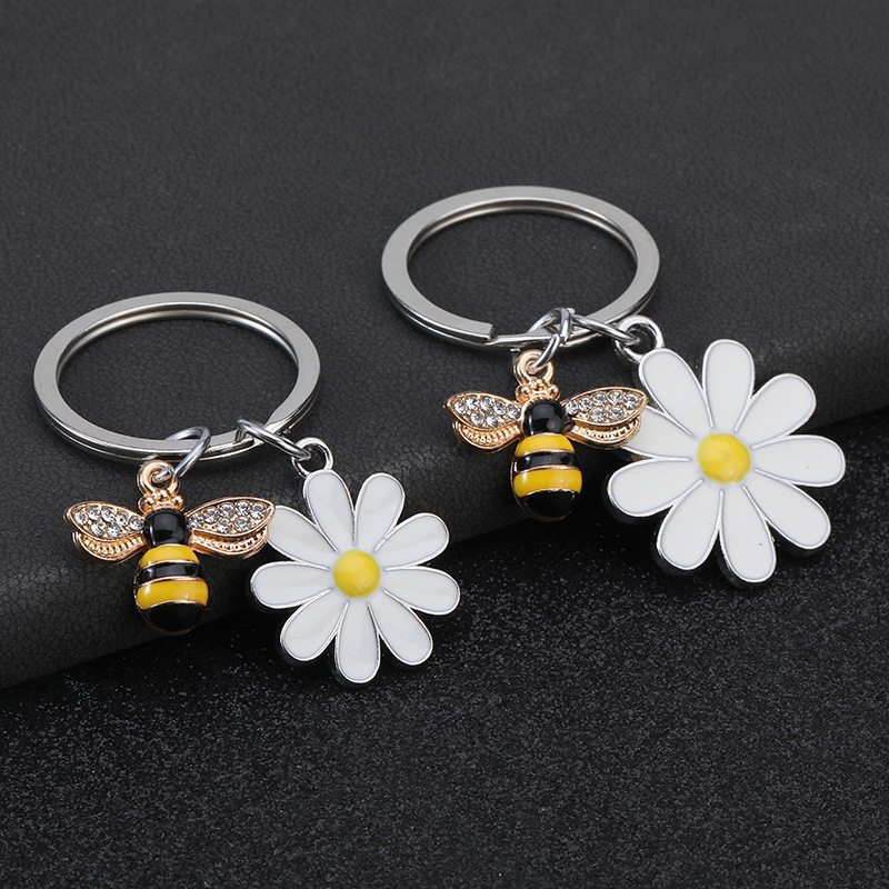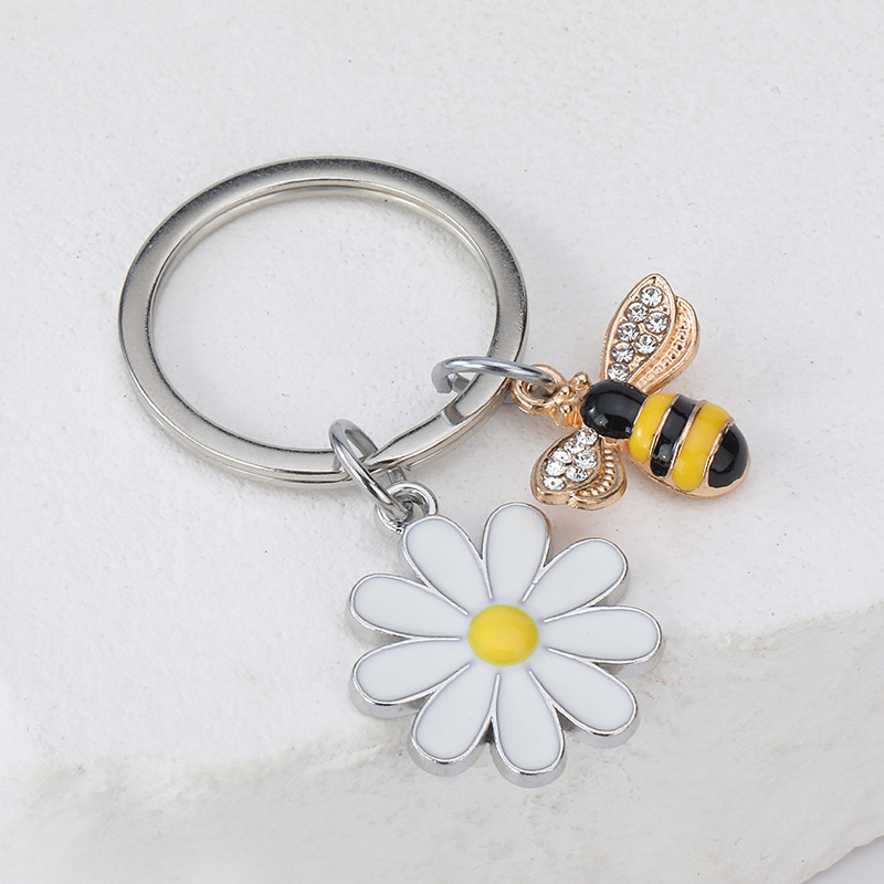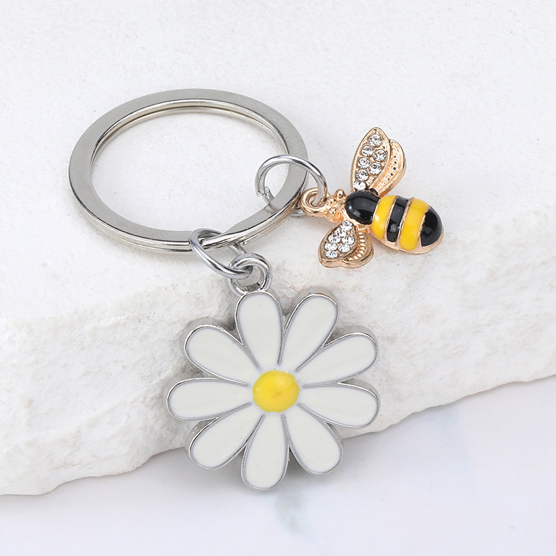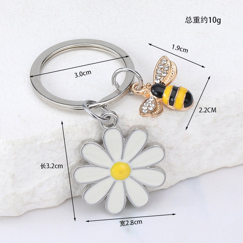 メーカー直販クロスボーダーミツバチ個性小デイジーキーホルダーストラップ小花キーリングカバン自動車キーペンダント