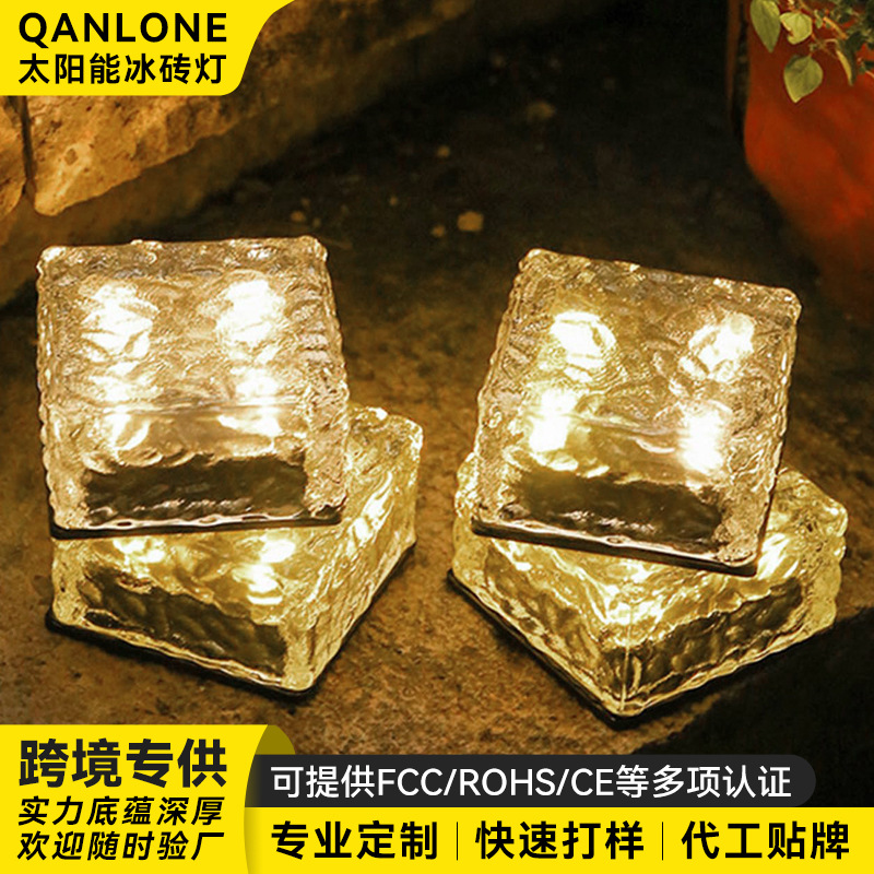 太阳能家用冰砖灯户外地砖灯LED方形庭院景观花园玻璃装饰灯防水