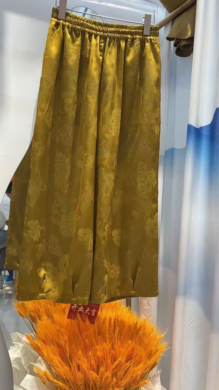 新しい中国風のレトロなジャカードワイドレッグパンツ夏の新しいレーヨンサテンジャカードパンツクールな薄いドレープパンツ