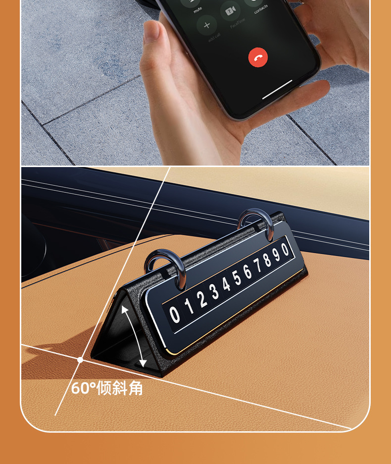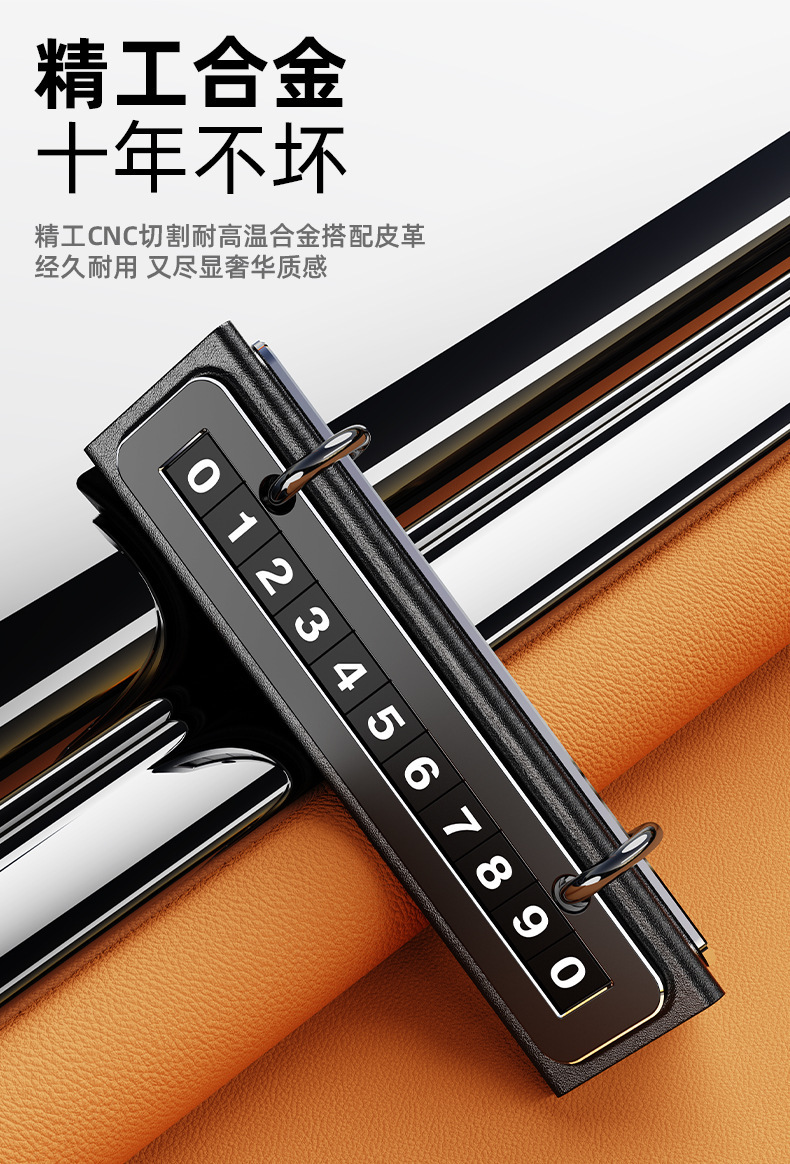 众横新款停车号码牌挪车电话牌车载创意日历皮革金属汽车内饰摆件