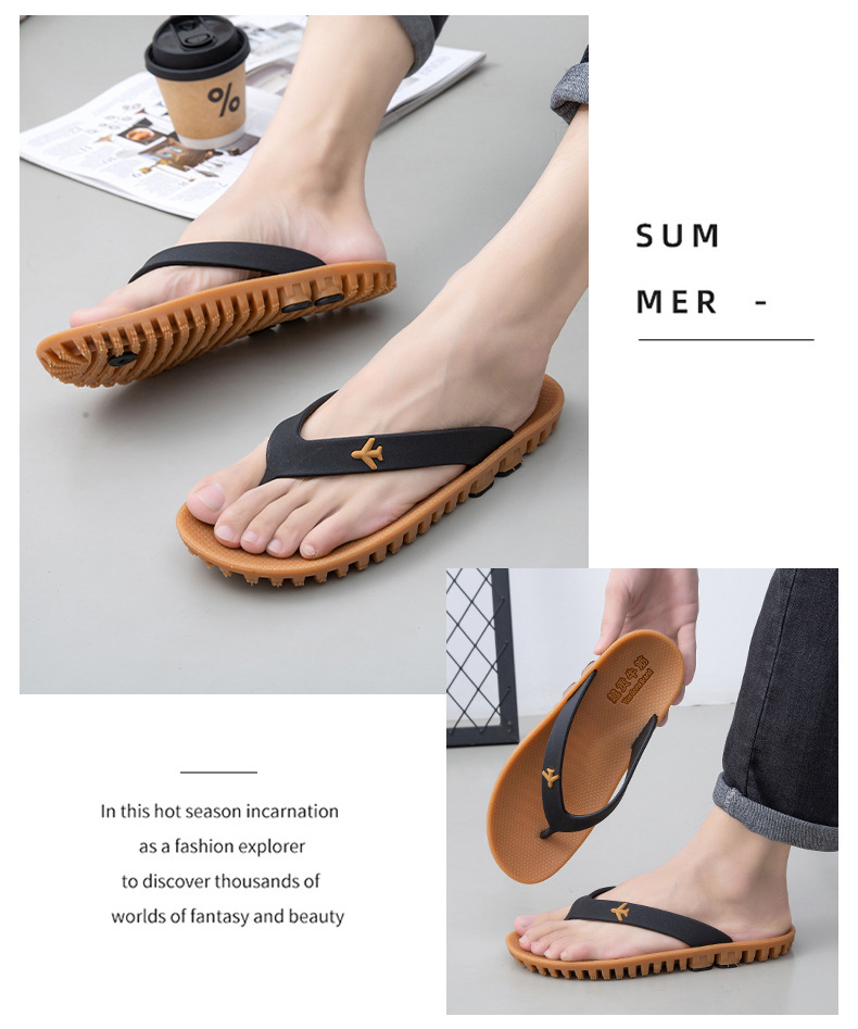 プラスチック底のビーチサンダル、メンズ、夏用、平底、滑り止め、耐摩耗性、超柔らかく快適、多用途、ビーチサンダル、トレンディ