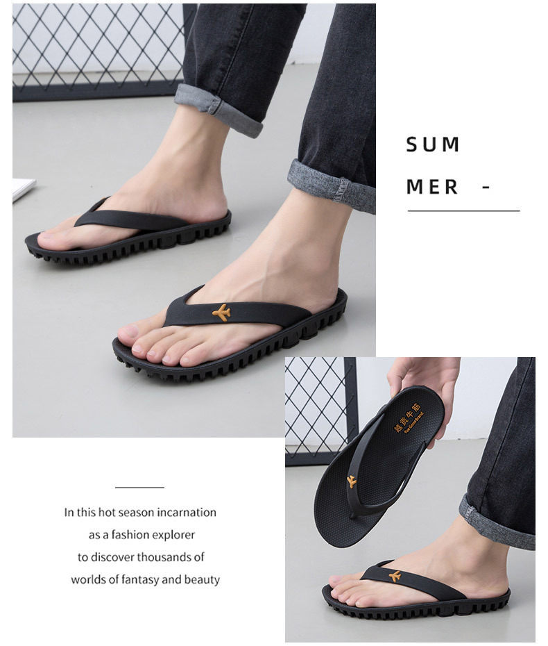 【ゴム】人字引き男夏滑り止め防臭スリッパ耐摩耗性外着ソフト底ビーチ靴スリッパ挟み足