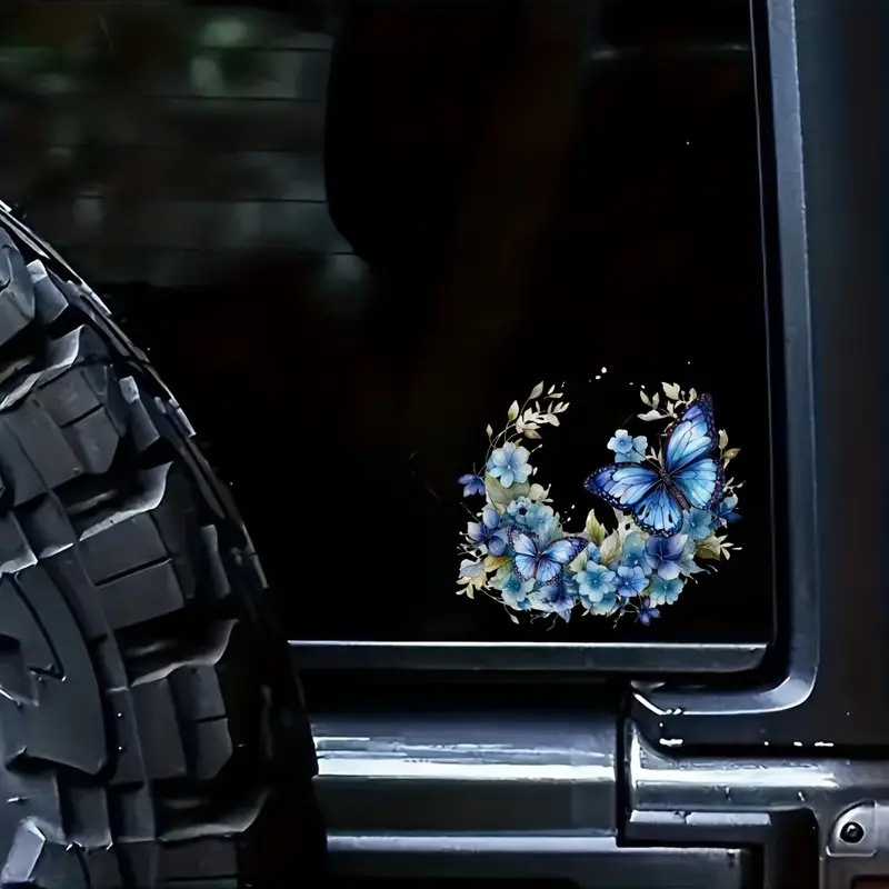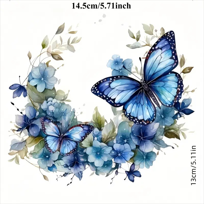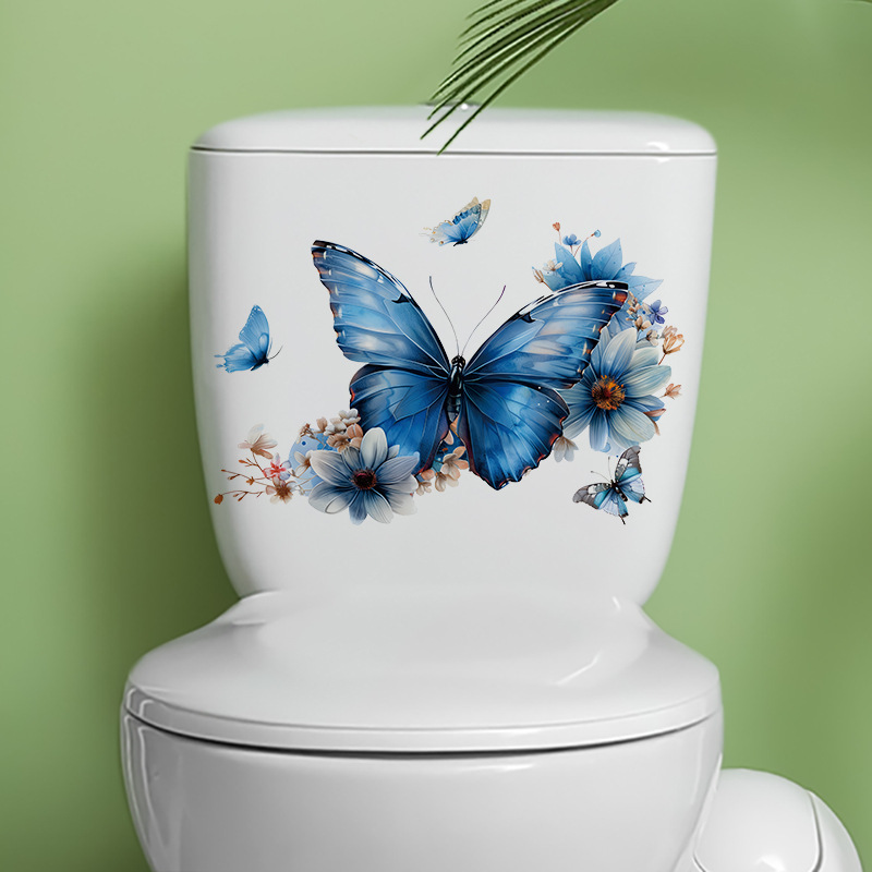 新品ACC33291ブルーバタフライ花ステッカーバスルームトイレ防水トイレステッカー自己粘着壁ステッカー
