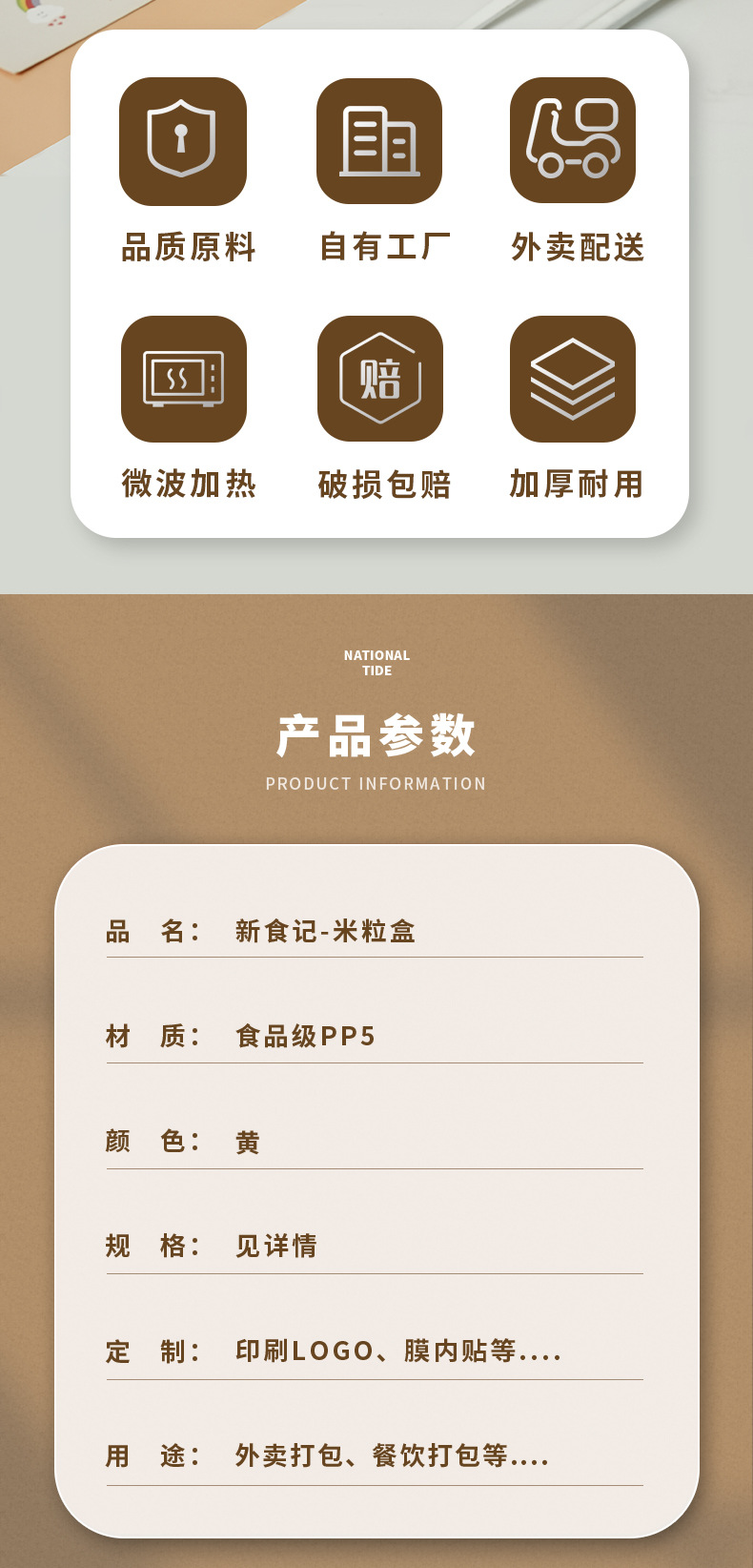 使い捨て包装箱、ベージュのクリエイティブなランチボックス、蓋付きの厚みのあるテイクアウトボックス、印刷可能なロゴ付きの漏れ防止ランチボックス