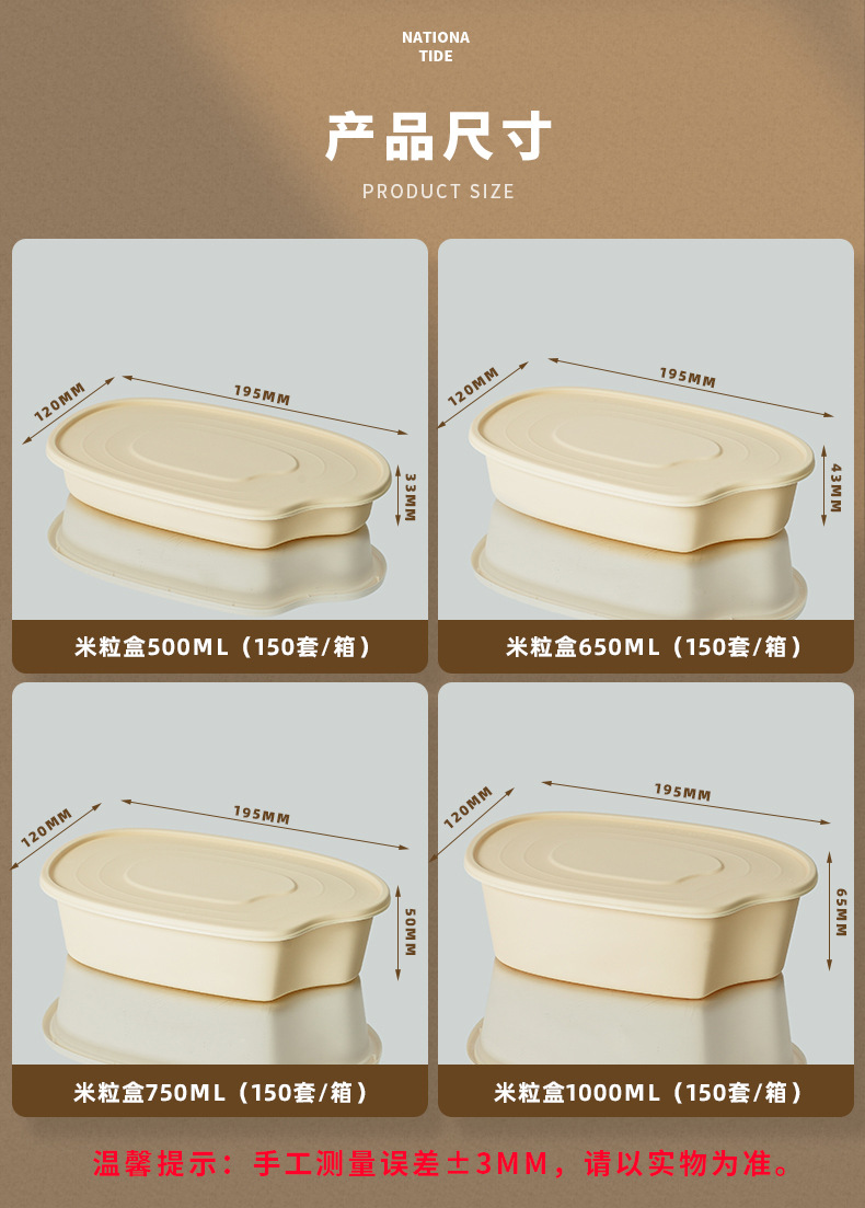 使い捨て弁当箱テイクアウトパッキングボックス黒1000mlpp二層蓋付きプラスチック楕円テイクアウトボックス