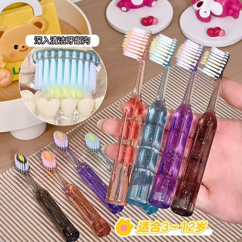 爆款水晶儿童牙刷3-12岁高级软毛巨无霸可爱夏季透明家用工厂批发