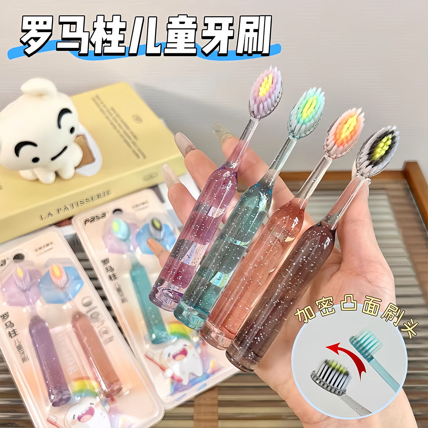 新款高档儿童罗马柱山型凸面水晶牙刷3-6-12岁洁齿护龈深层清洁