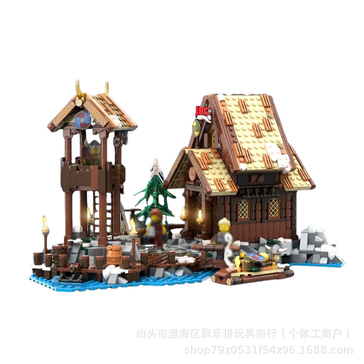 レゴ MOC クロスボーダーホットセール建築村バイキング村ビーチパズル男性組み立てビルディングブロックセットモデルと互換性があります。