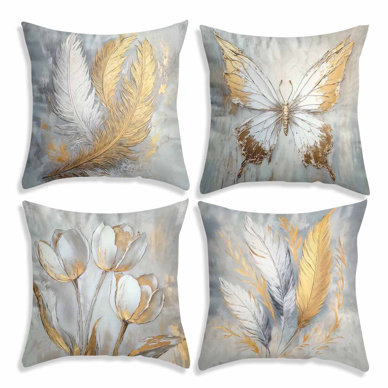 Temuよく売れている金銀の蝶の羽の花の亜麻の抱き枕カバーjitはリビングのソファーの装飾のクッションカバーを代行します。